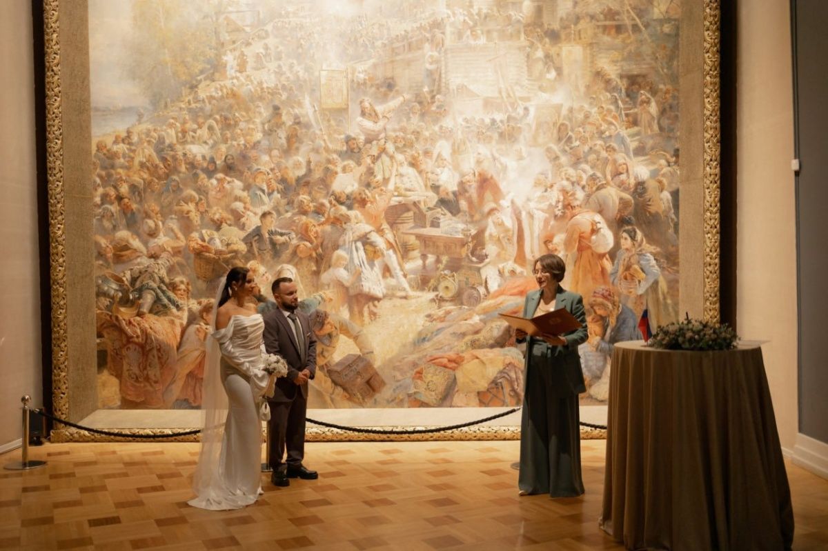 Первые церемонии уже состоялись — молодожены обменялись кольцами в закрытой кабине аттракциона с панорамным видом на город и у масштабного исторического полотна Константина Маковского «Воззвание Минина». Подробную информацию о доступных локациях для выездной регистрации брака можно найти на сайте Нижегородского дома бракосочетания.