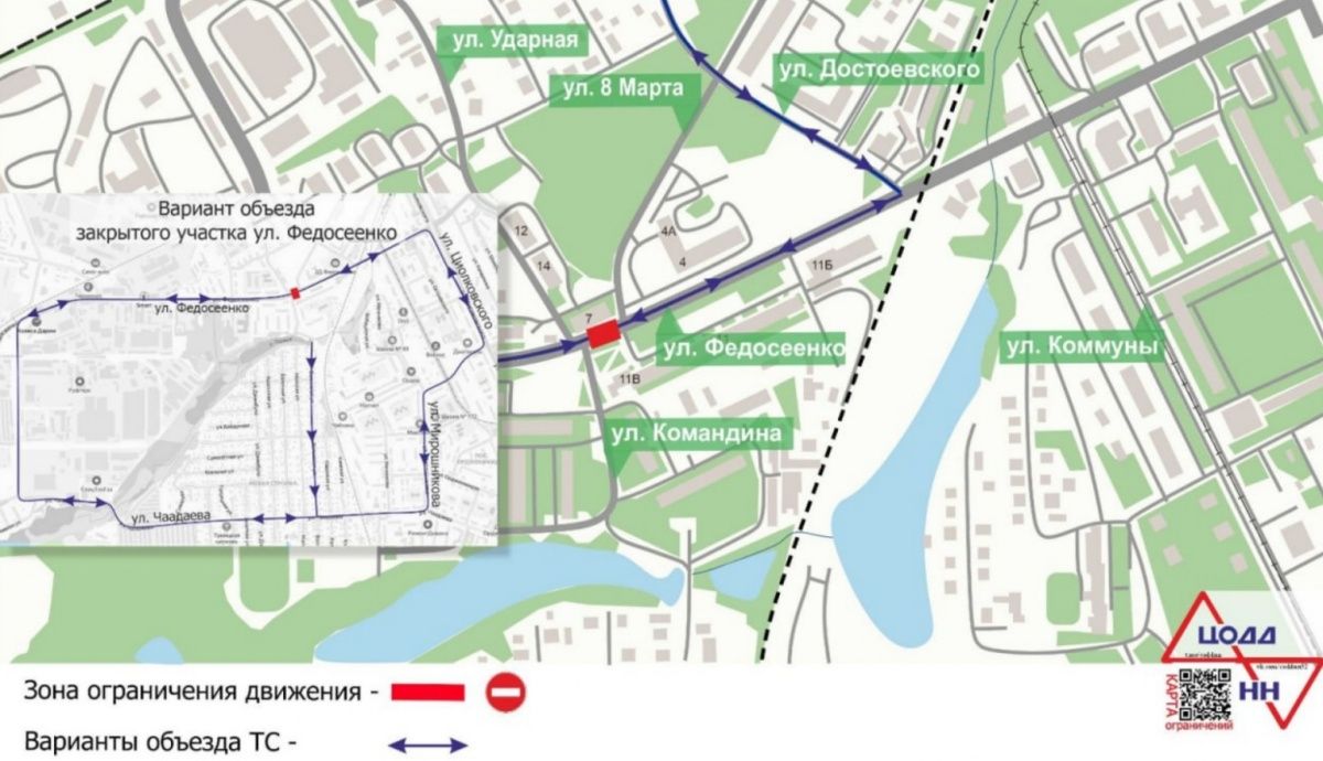 Уточняется, что с 06:00 21 июля до 06:00 3 августа движение будет приостановлено около дома № 63А/1. Кроме того, автомобилисты также не смогут проехать между домами № 7 и № 11В с 06:00 4 августа до 06:00 17 августа.