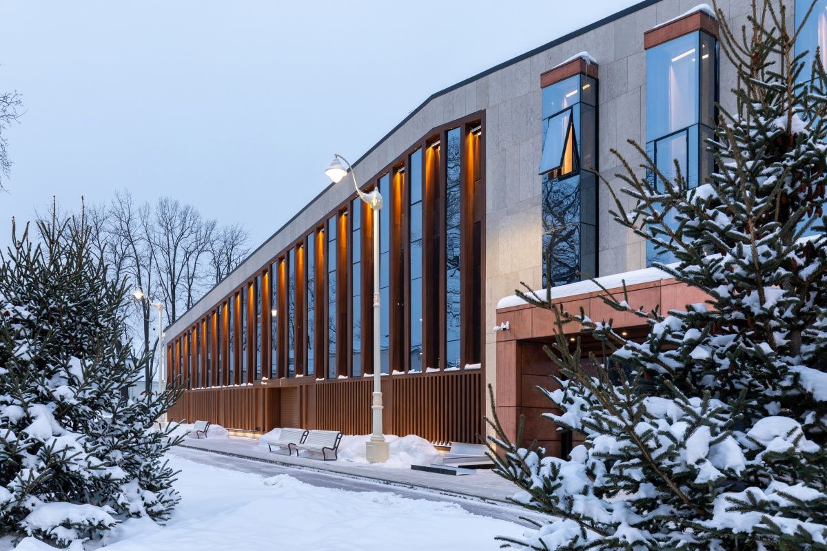 Перед нами стояла сложная задача: вписать крупный объем в плотную ткань выставки, не нарушив ее камерности. В плане здание представляет собой почти квадрат, который, однако, посажен не ортогонально к существующей сетке. Это решение продиктовано как жесткими границами участка, так и технологической логикой, — уточнили архитекторы.