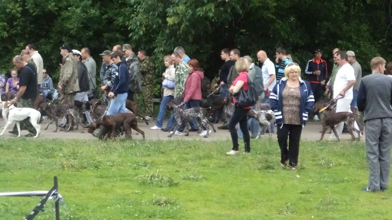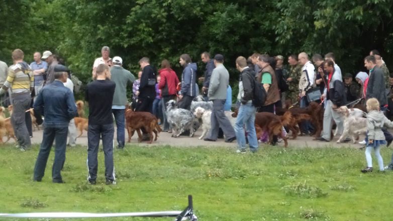 На 18 рингов в общей сложности вышло около 200 собак двадцати четырех охотничьих пород, среди которых борзые, гончие, лайки, спаниели, лабрадоры, легавые и норные.