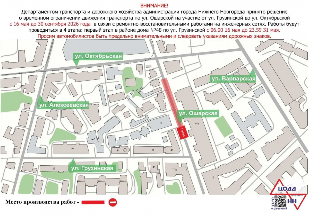 Движение по улице Ошарской в Нижнем Новгороде будет ограничено с 16 мая для реконструкции коммунальных сетей. Об этом сообщили в пресс-службе АО «Объединенный коммунальный оператор».