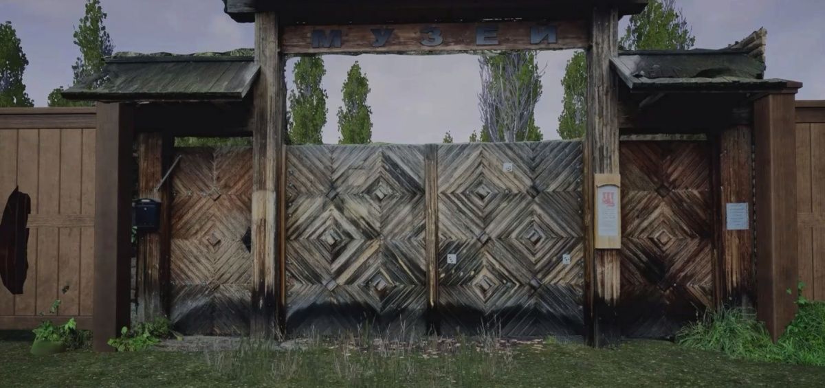 Демонстрация памятников деревянного зодчества длится около трех минут и заканчивается там же, где и начиналась, около ворот Щелоковского хутора. Все это время на фоне играет современная музыка с участием балалайки.