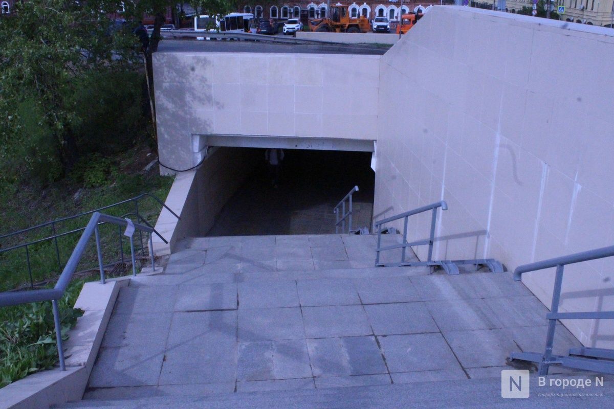 В подземном переходе на Стрелке уже отремонтировали пандус и частично ступени. В ближайшее время планируется покрасить потолок и заменить светильники.