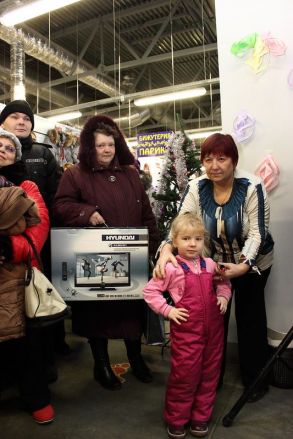Однако это не все подарки от «Комсомолки». Детишек развлекал прямо в центре народной торговли веселый клоун, а вот взрослые в это время могли поучаствовать в лотерее призов и подарков, главным трофеем которой стал современный плазменный телевизор! Веселый Дед Мороз вручил множество ценных подарков, и подарил победителям лотереи такие долгожданные новогодние сюрпризы!