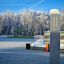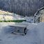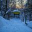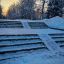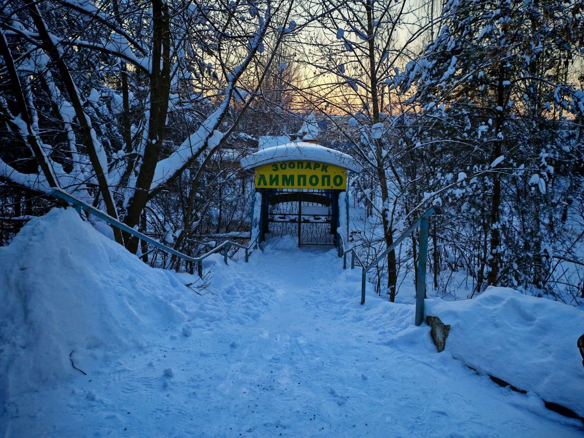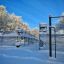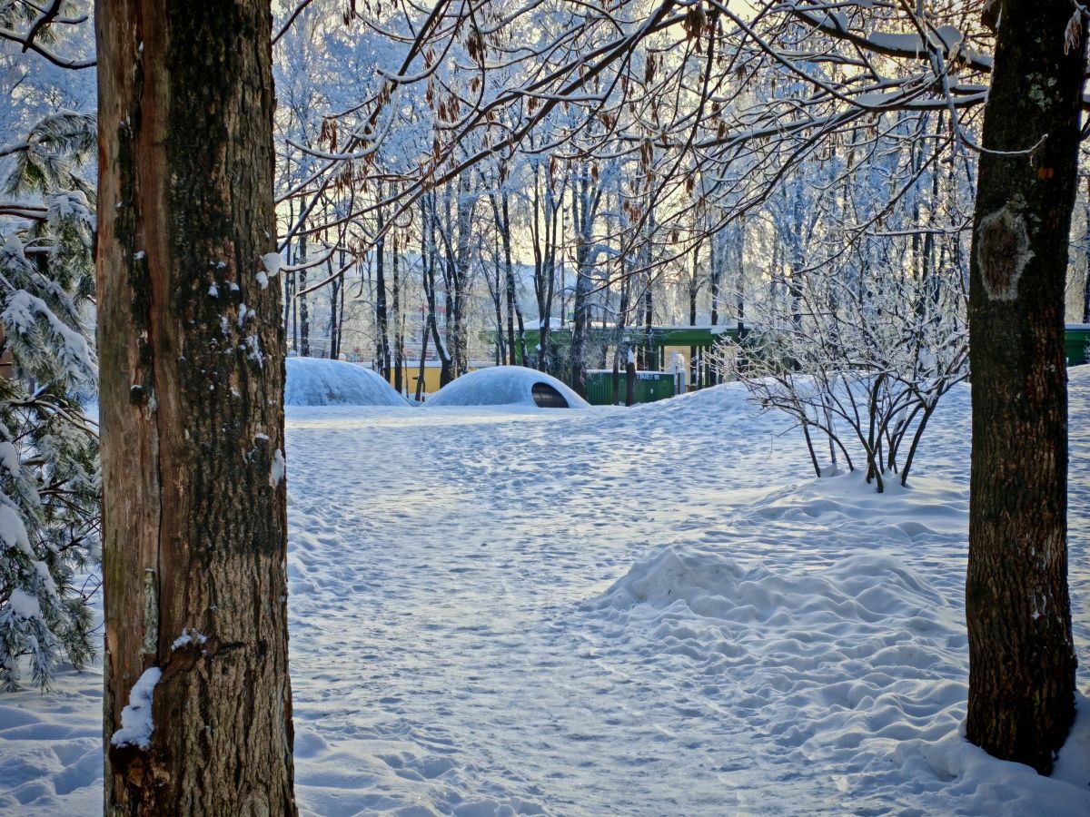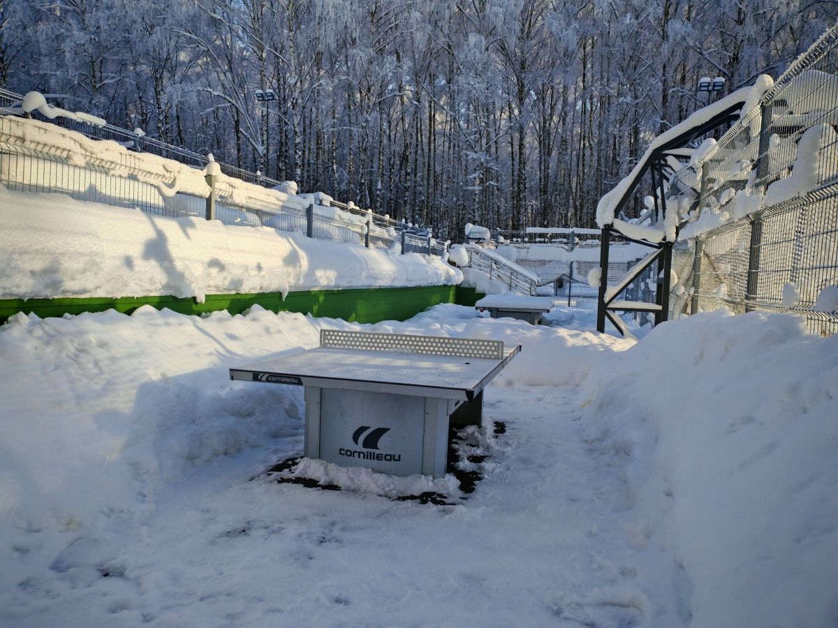 Следы человека, что иронично, почти всегда в снегу. Спортивные площадки, временно неработающие из-за зимы, укрыты белым ковром. Теннисные столы тоже спрятаны под снегом. Однако, судя по всему, редкие гости все же приходили сюда. Оборудование, которое находится ближе к дорожке, расчищено и готово к использованию.