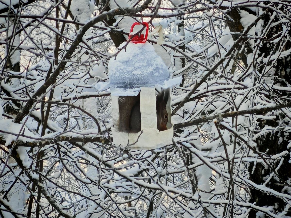 Этот зверек так бойко и резво скакал по ветвям, скидывая с них снег и словно протестуя против такого толстого слоя, что не получилось даже сфотографировать. Белка быстро и незаметно отдалялась, стоило мне приблизиться. Она продолжала свою игру на других ветвях.