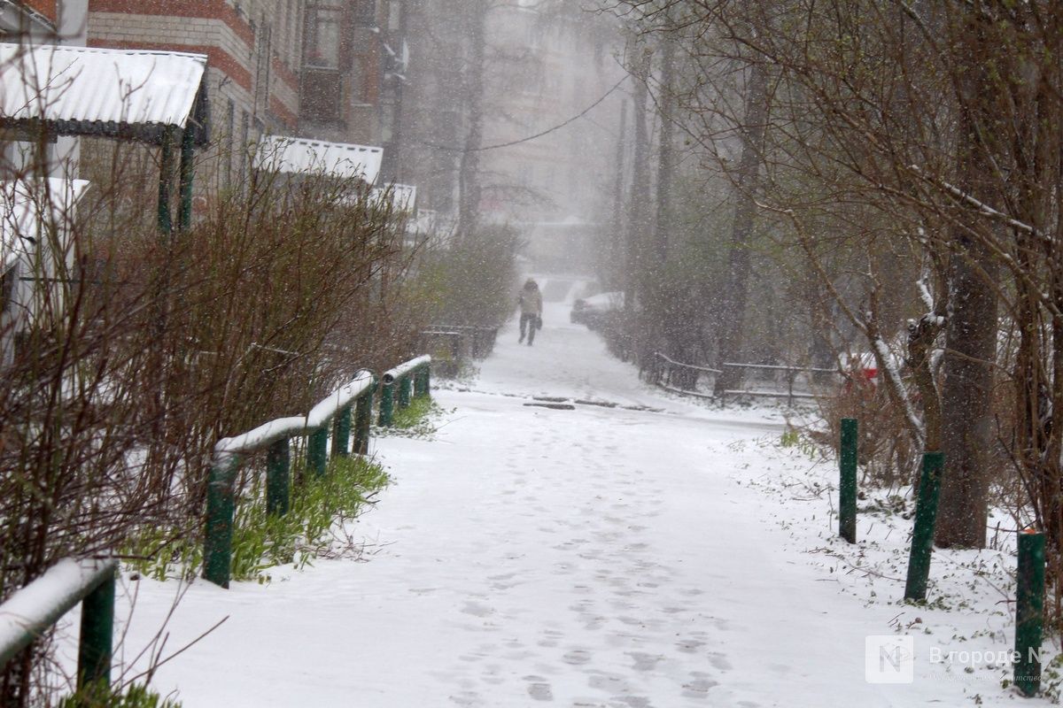 Сильный снегопад внезапно обрушился на Нижний Новгород 20 апреля. Только за ночь в регионе выпало 14 сантиметров снега. И метель продолжается.