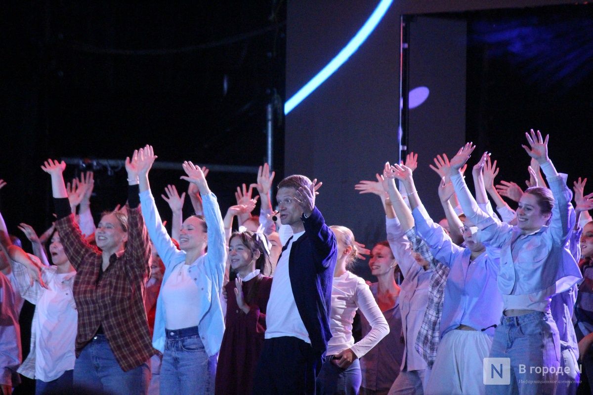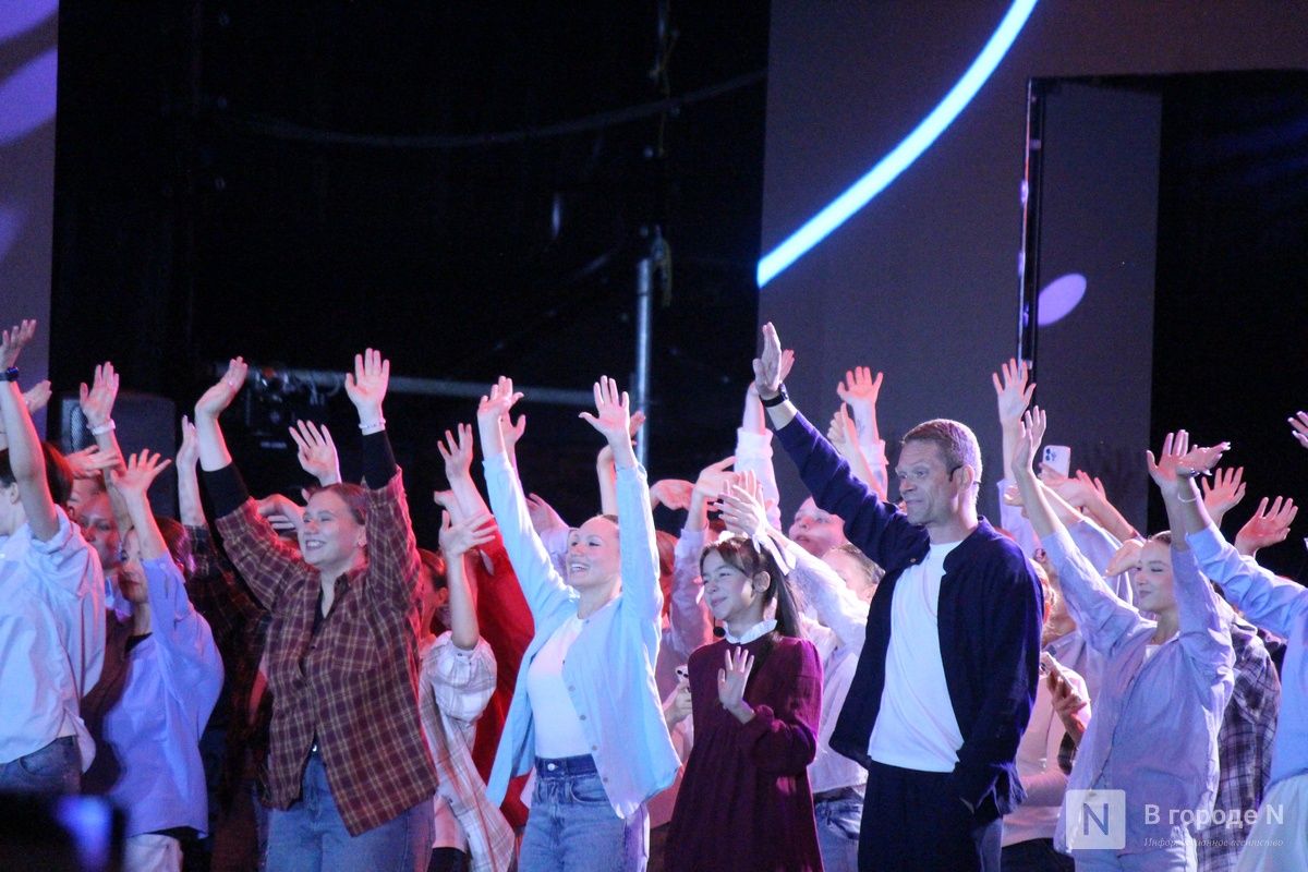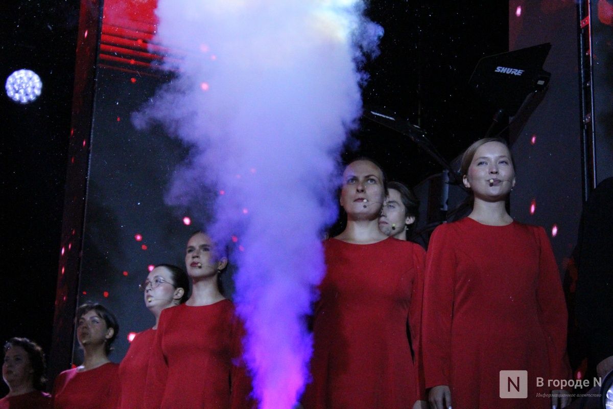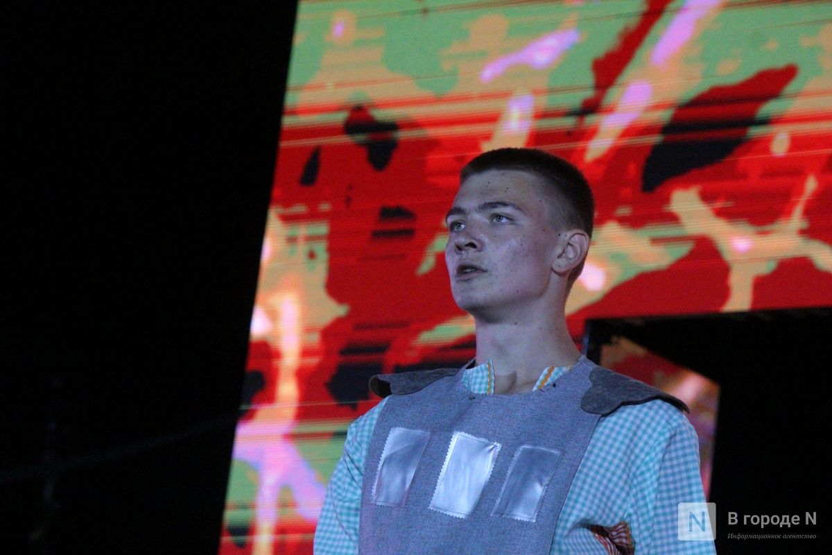 Представление длилось около получаса. С помощью вокальных и танцевальных номеров зрителям рассказали историю о героизме нижегородцев с древнейших времен до наших дней. В постановке приняли участие артисты местных театров, а также участники телепроектов «Голос» (16+) и «Голос. Дети» (6+).