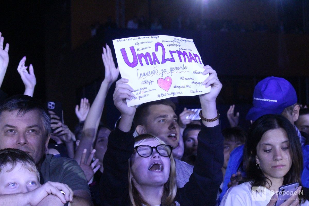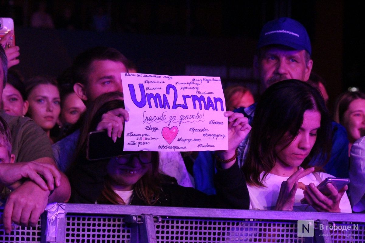 Но самым ожидаемым событием для большинства из тех, кто пришел на главную площадь, стал концерт известной группы Uma2rman (16+). Основатели коллектива — братья Владимир и Сергей Кристовские — сами нижегородцы, поэтому их выступление в День города стало очень символичным.