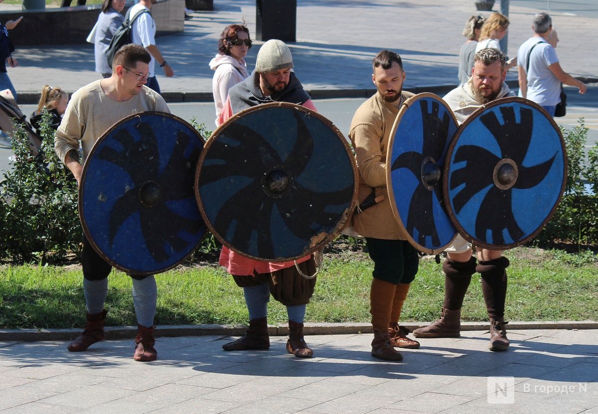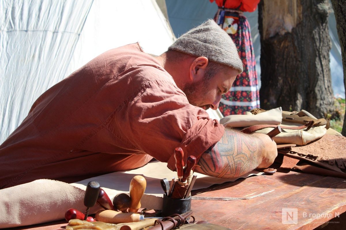 Территория в сквере около памятника Минину превратилась в настоящий средневековый город. Там расположилась зона исторической реконструкции. Здесь можно было понаблюдать за работой кузнецов, сапожников и других ремесленников, встретиться с воинами из прошлого и станцевать вместе с девушками в старинных одеяниях.