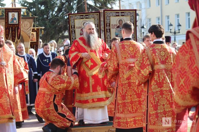 Это символ победы жизни над смертью. Сегодня ночью мы с вами пришли во множество храмов земли Нижегородской и ощутили великую радость. Мы услышали благую весть о том, что Христос восстал из мертвых смертью смерть поправ. И уже по традиции в пасхальный воскресный день мы с вами совершаем крестный ход, мы шествуем из центра земли Нижегородской — благословенного кремля, — сказал митрополит Георгий.