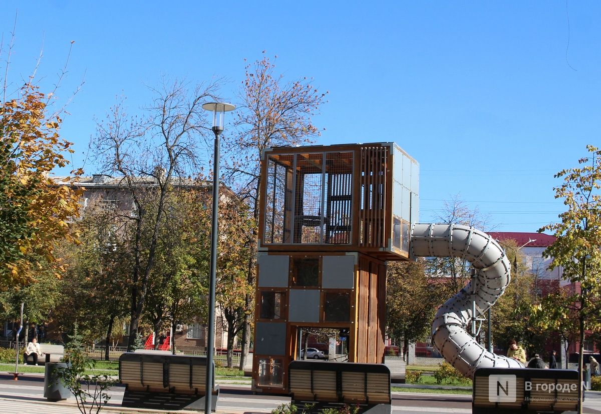 Кстати, в этом году территорию около исторического здания благоустроили. Там появилось современное освещение, новое покрытие, более 600 деревьев и кустарников, скамейки, пергола с качелями. Изюминкой пространства стало гранитное панно с картой Автозаводского района. Именно отсюда мэр Нижнего Новгорода Юрий Шалабаев предложил начинать все экскурсии.