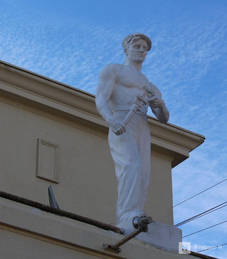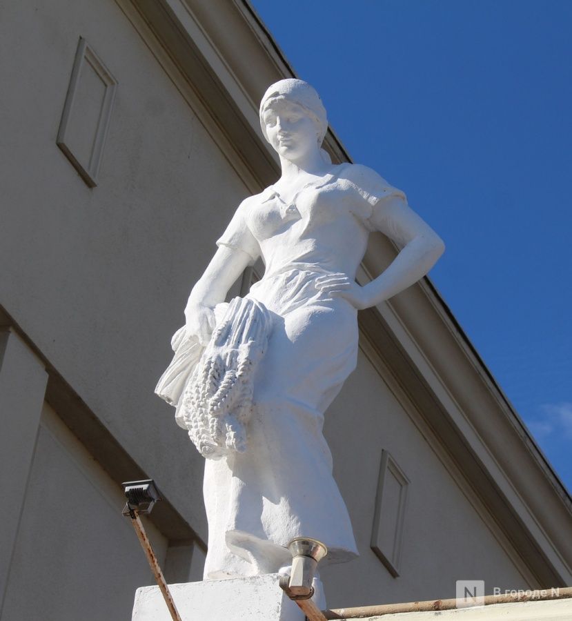 Особое внимание привлекают сохранившиеся до наших дней скульптуры, украшающие здание. Их 11. Они изображают людей разных профессий. К примеру, здесь есть летчики, рабочие, колхозницы.