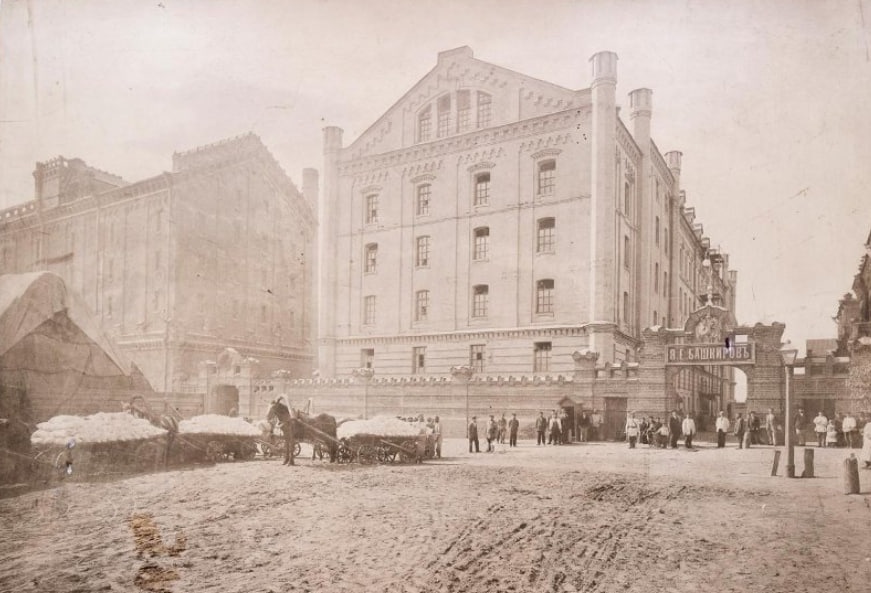 Примерно в то же время торговая фирма «Емельянъ Башкировъ и сыновья» с разрешения императора запустила на набережной Оки (сейчас улица Интернациональная) паровую пятиэтажную мельницу.