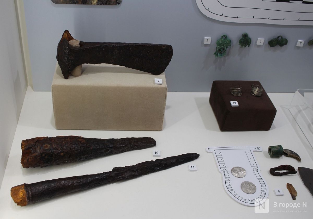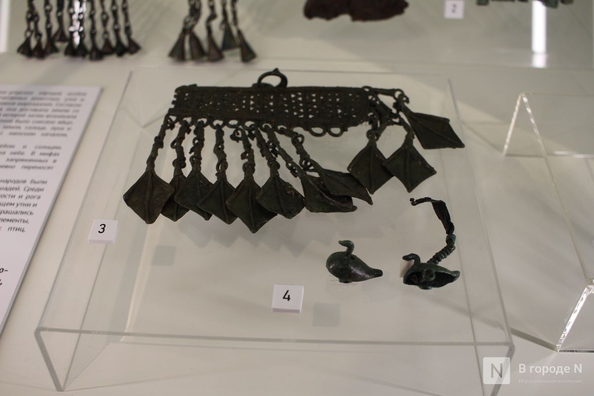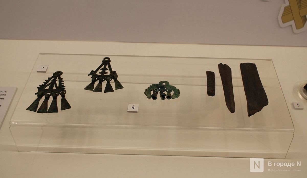 Большинство артефактов были обнаружены при раскопках Звягинского могильника на территории Вачского округа, где специалисты работают с 2023 года. Также представлены находки из Мурома и Выксы. Всего в экспозиции более 300 уникальных предметов, многие из которых еще совсем недавно были погребены под толщей земли.
