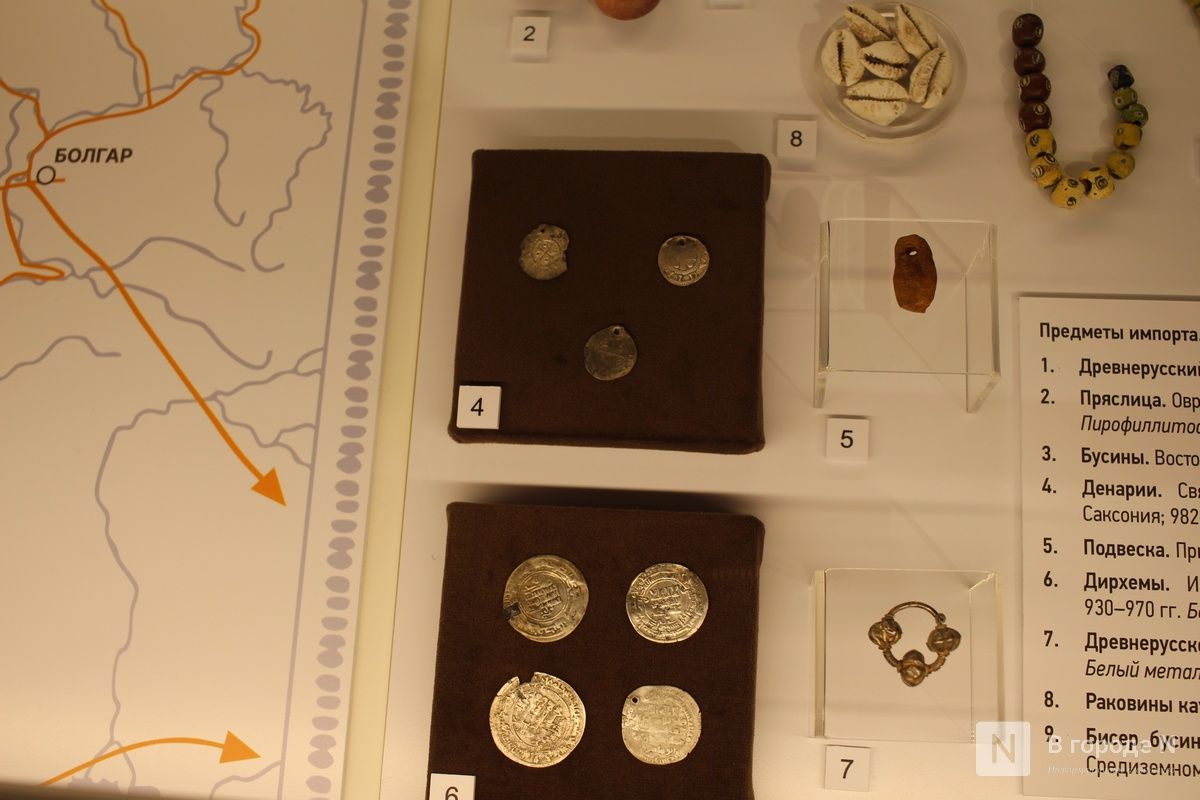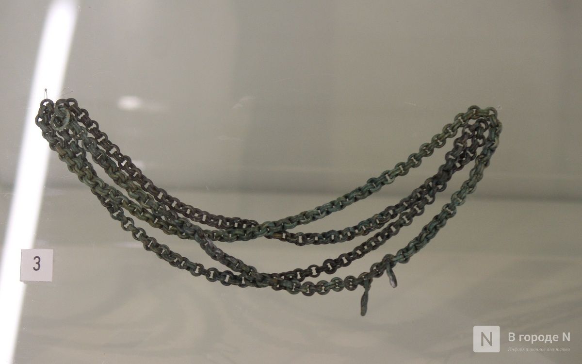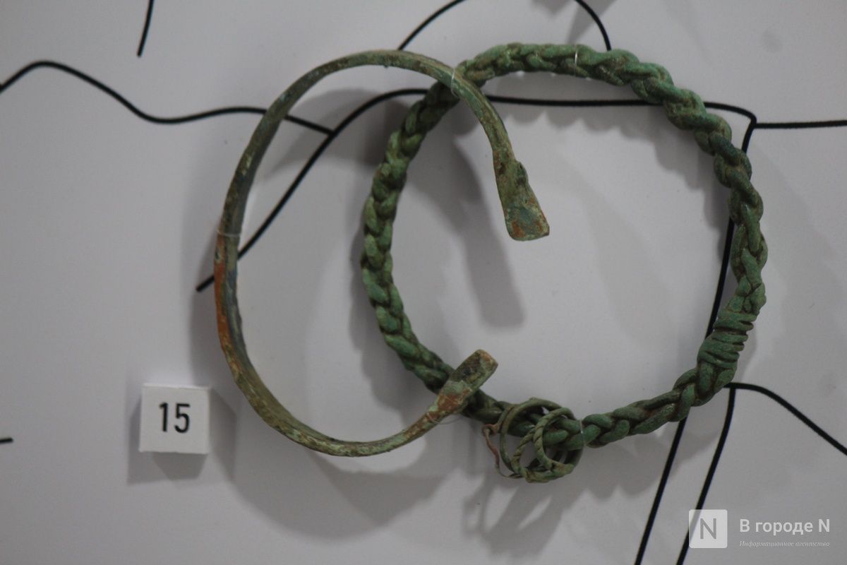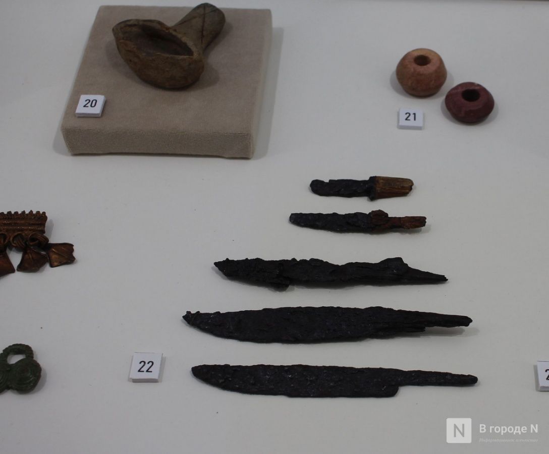 Большинство артефактов были обнаружены при раскопках Звягинского могильника на территории Вачского округа, где специалисты работают с 2023 года. Также представлены находки из Мурома и Выксы. Всего в экспозиции более 300 уникальных предметов, многие из которых еще совсем недавно были погребены под толщей земли.