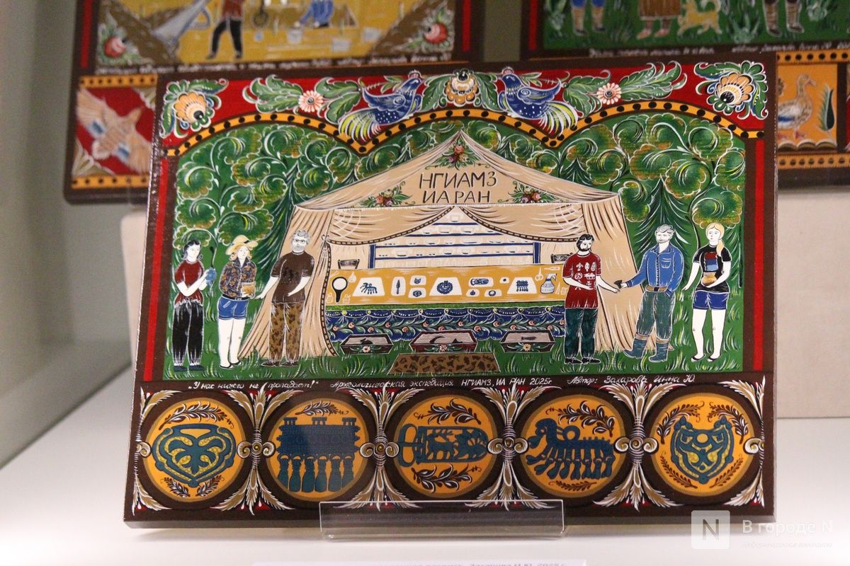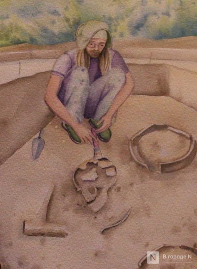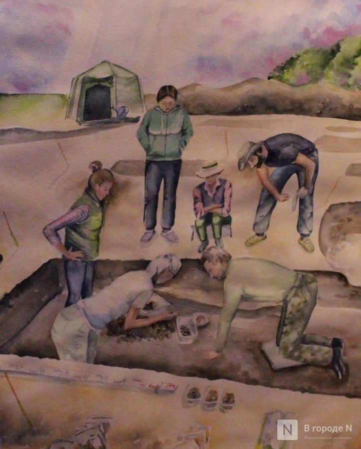 Дополняют экспозицию работы нижегородских художников, написанные на пленэре во время раскопок. Некоторые из них даже выполнены в стиле городецкой росписи.