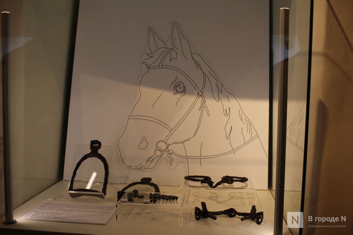 В этом году археологи впервые обнаружили на территории Вачского округа захоронения коней. Это свидетельствует о том, что лошади были особо почитаемыми животными в племени мурома. В могилах были найдены стремена, удила, остатки уздечек и подпружные пряжки. Все это тоже представлено в Никольской башне.