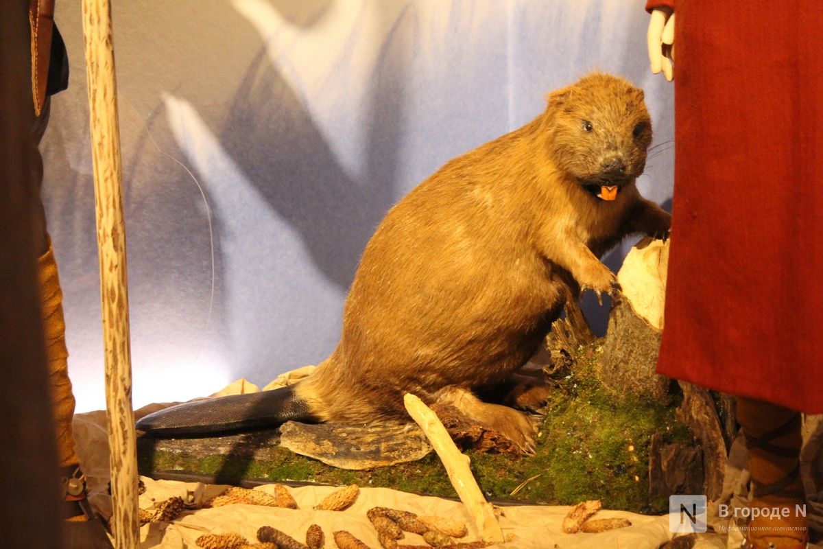 На выставке демонстрируются и реконструкции костюмов мужчины и женщины X века. Они были созданы на основе находок археологов. Инсталляцию украшают фигуры утки и бобра. Последний тоже появился здесь не случайно. По словам Анастасии Швецовой, археологи нашли поясную сумку, сделанную из выделанной кожи с хвоста этого животного.