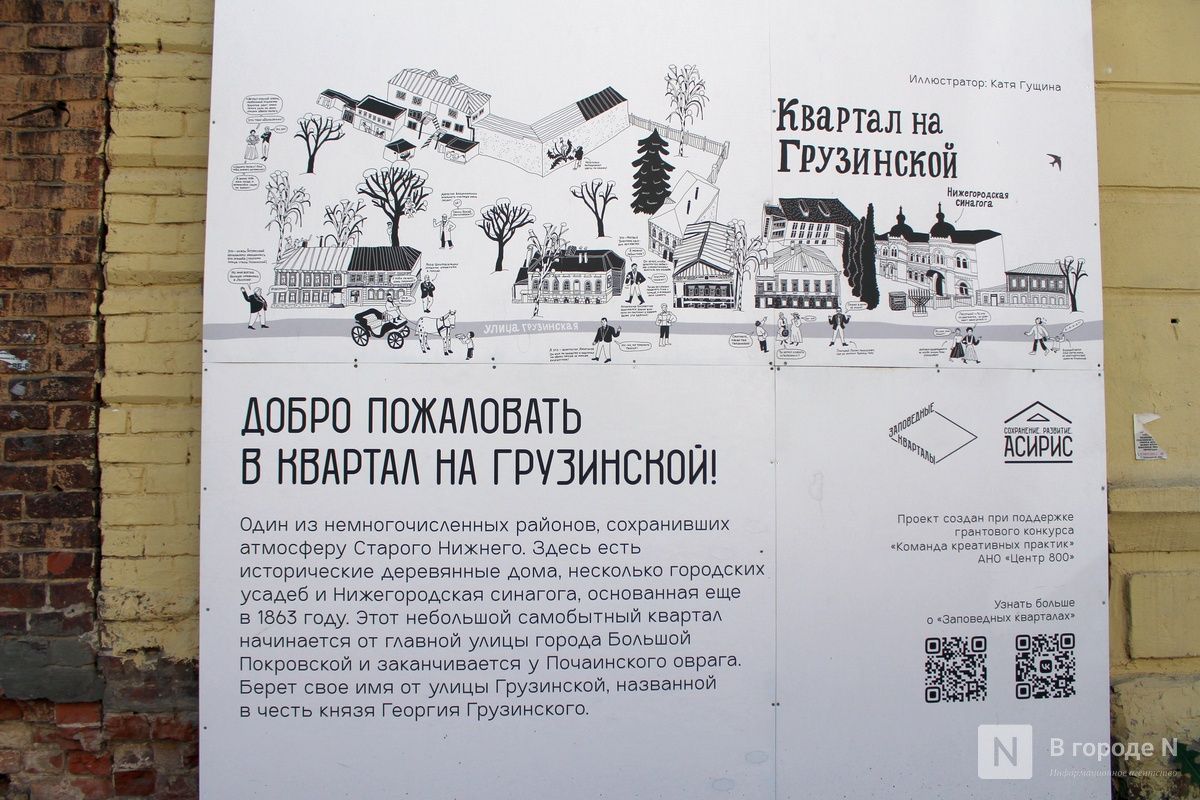 Уникальный квартал со старинными зданиями, сохранившийся на улице Грузинской в центре Нижнего Новгорода, сегодня не пользуется особой популярностью у туристов, так как многие дома находятся в плачевном состоянии. Тем не менее, эти памятники истории могли бы стать настоящими жемчужинами Приволжской столицы, если всерьез заняться их восстановлением. Впрочем, и сейчас они привлекают внимание налетом старины, удивительной резьбой и другими деталями.