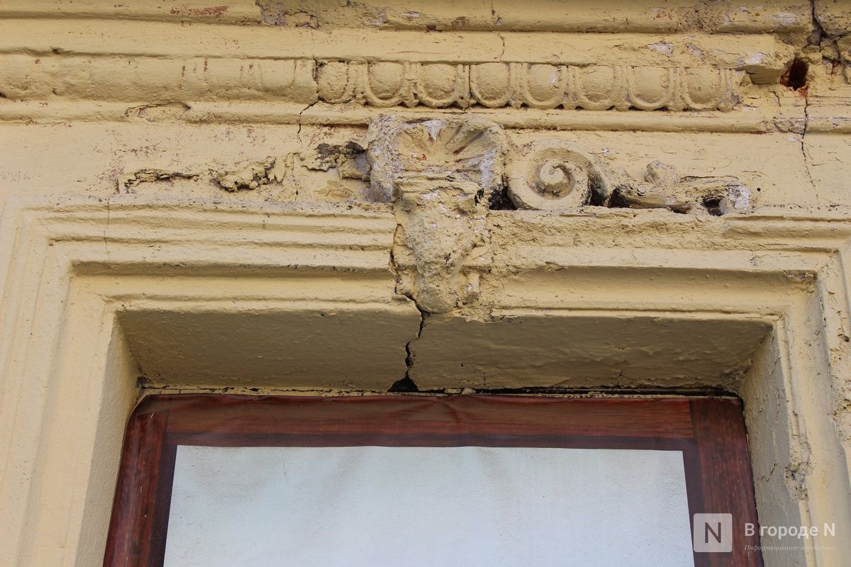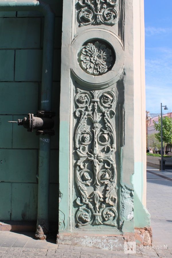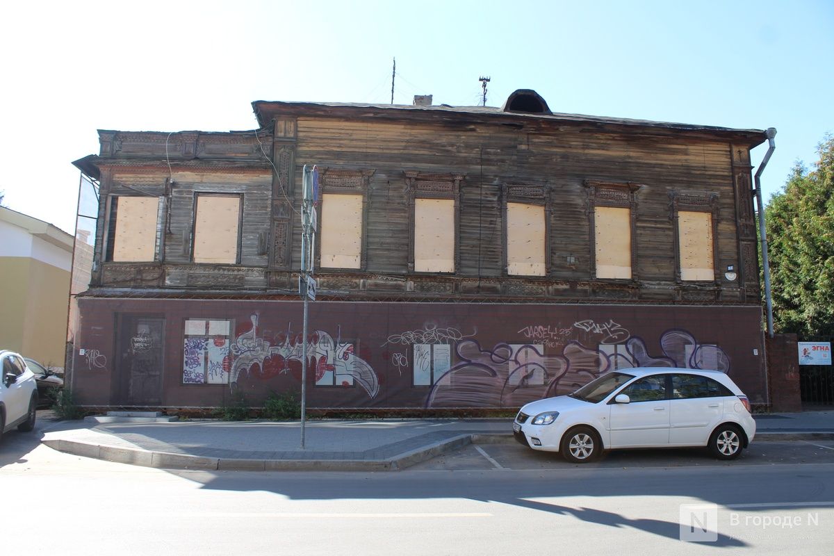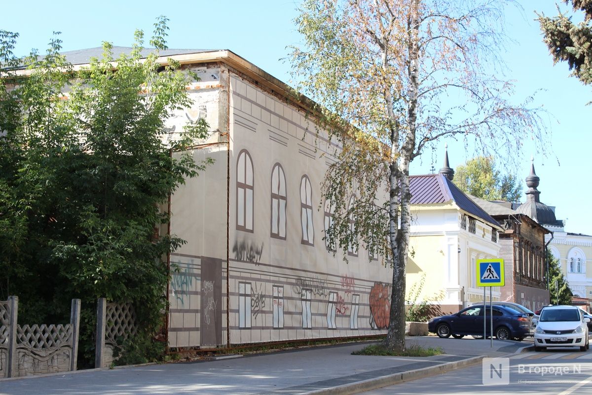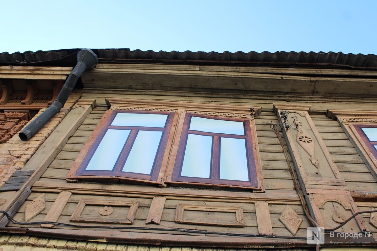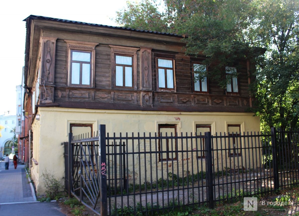 Далее находится дом № 7б, известный как флигель городской усадьбы нижегородского цехового Матвея Телогреева. Он был построен в середине XIX века. Его владелец считался одним из лучших ювелиров и часовых дел мастеров в Нижнем Новгороде. Сейчас этот дом выглядит гораздо лучше своих «соседей». Видно, что его не так давно ремонтировали.