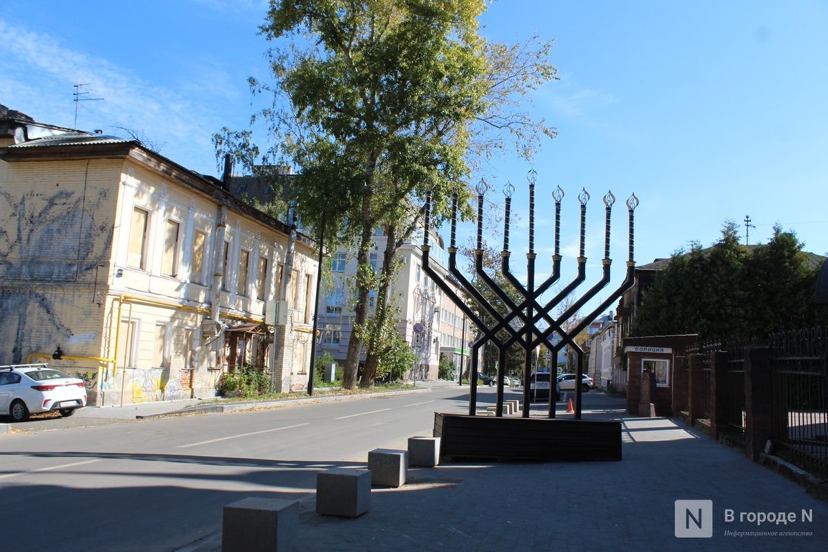 Украшением квартала является Нижегородская синагога. Ее построили в 1884 году. По замыслу архитектора Ивана Неймана, фасад должен был напоминать свиток Торы. Сам квартал из-за наличия этого религиозного объекта также называли Еврейским. Рядом с синагогой установлена огромная менора.