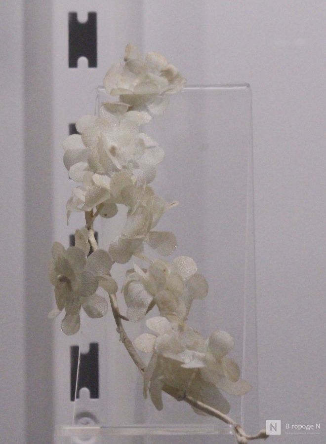 Трогательная история связана со свадебным венком из белых искусственных цветов. Он принадлежал медсестре Евдокии Селедкиной, уроженке села Шатки. Она вступила в брак со своим возлюбленным — капитаном Александром Рыжиковым — в Берлине в 1945 году. Украшение для нее сделала немецкая девушка.