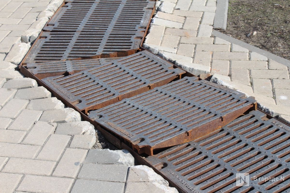 Еще одна проблема Большой Покровской — ливневки. Около площади Минина и Пожарского решетки проржавели и местами провалились в желоб вместе с частями покрытия, также внутри наблюдается мусор. Стоит ли говорить, что при первом же сильном дожде вода не справится с препятствиями и хлынет наружу. Кроме того, провалы могут представлять опасность для пешеходов и самокатчиков. Но никаких мер по их устранению пока не принимается.