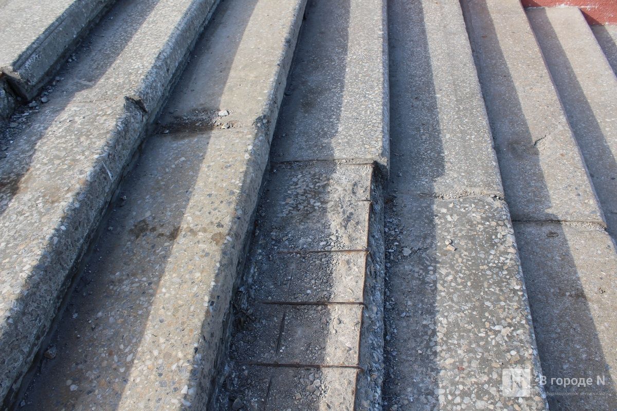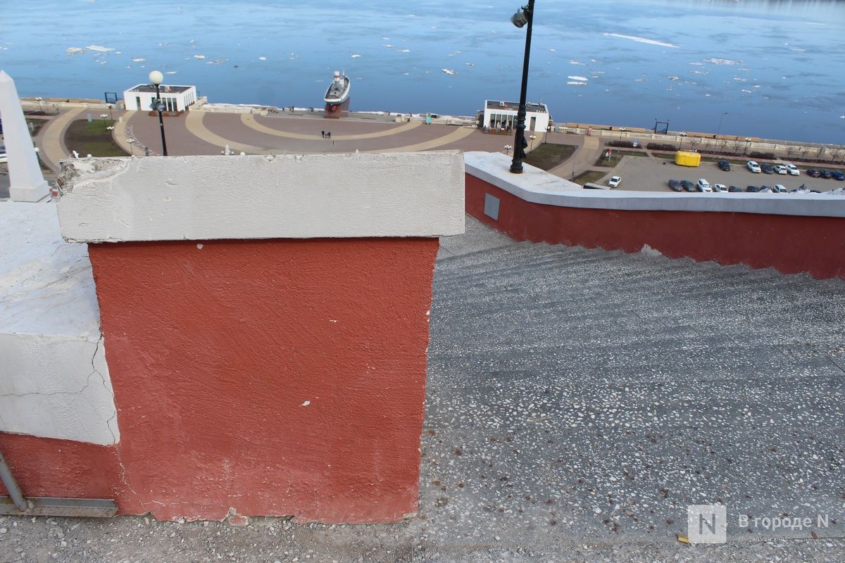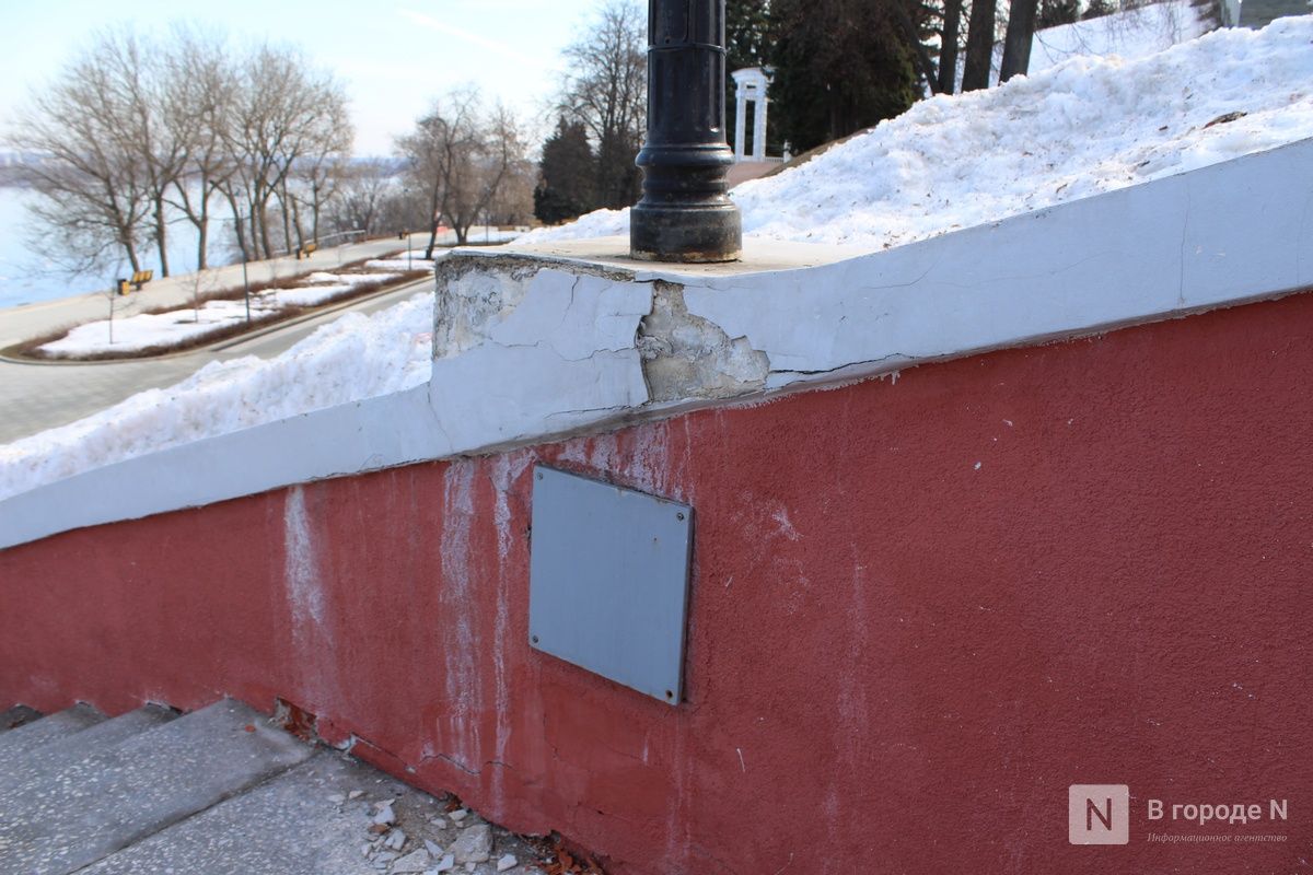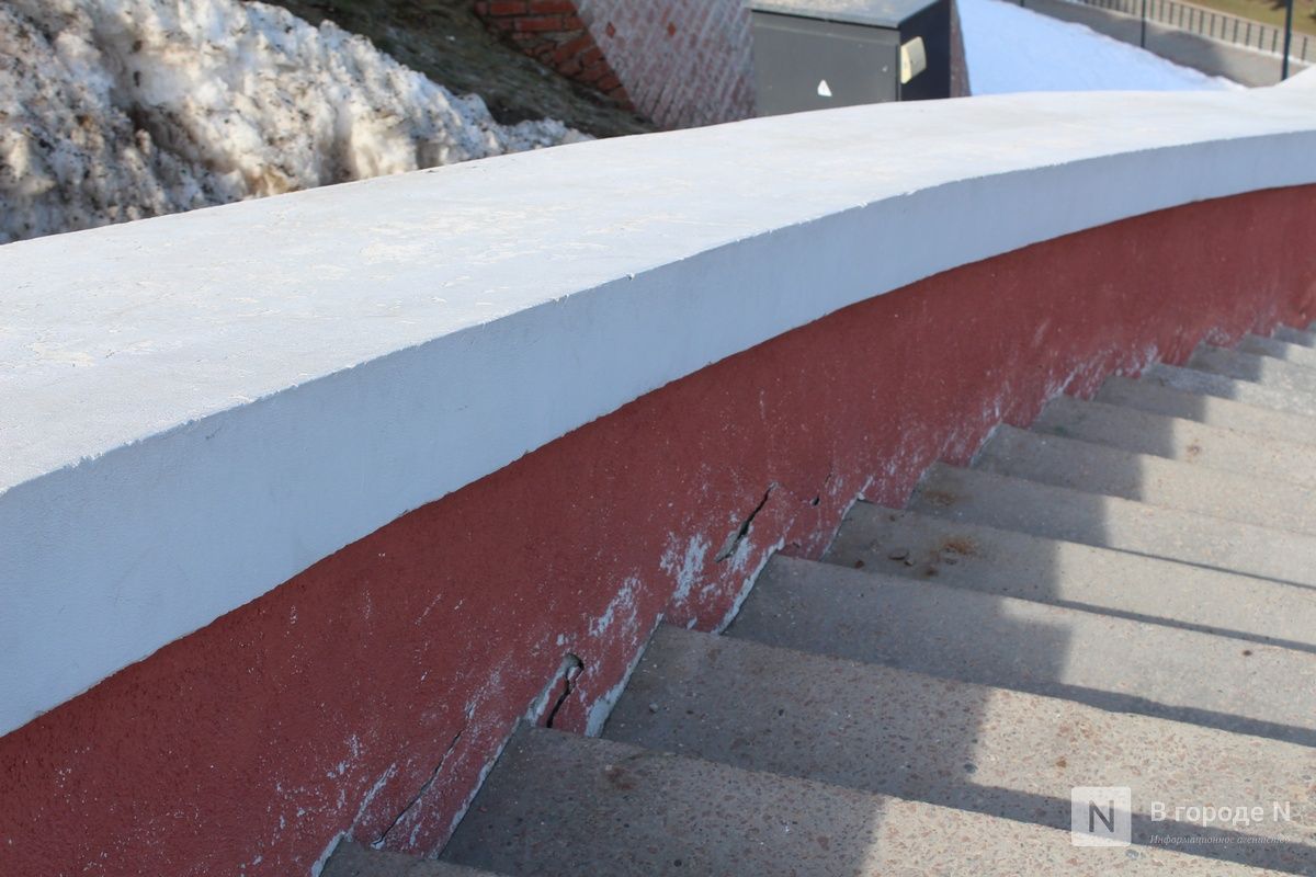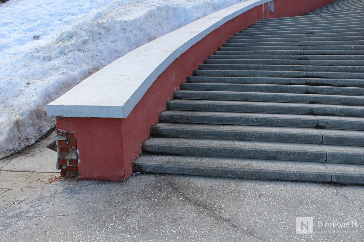 В управлении делами правительства Нижегородской области ИА «В городе N» пояснили, что разрушения связаны с аномальными осадками этой зимой и высокой нагрузкой под воздействием снежных масс. В настоящее время организован мониторинг состояния конструкций. Часть лестницы закрыта для посещения, там установлены ограждения и размещены предупреждающие объявления.