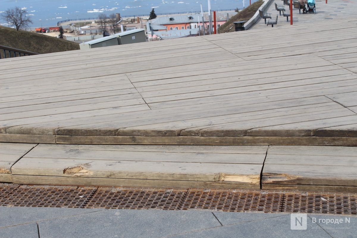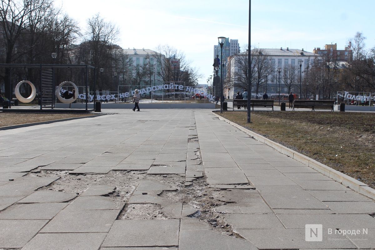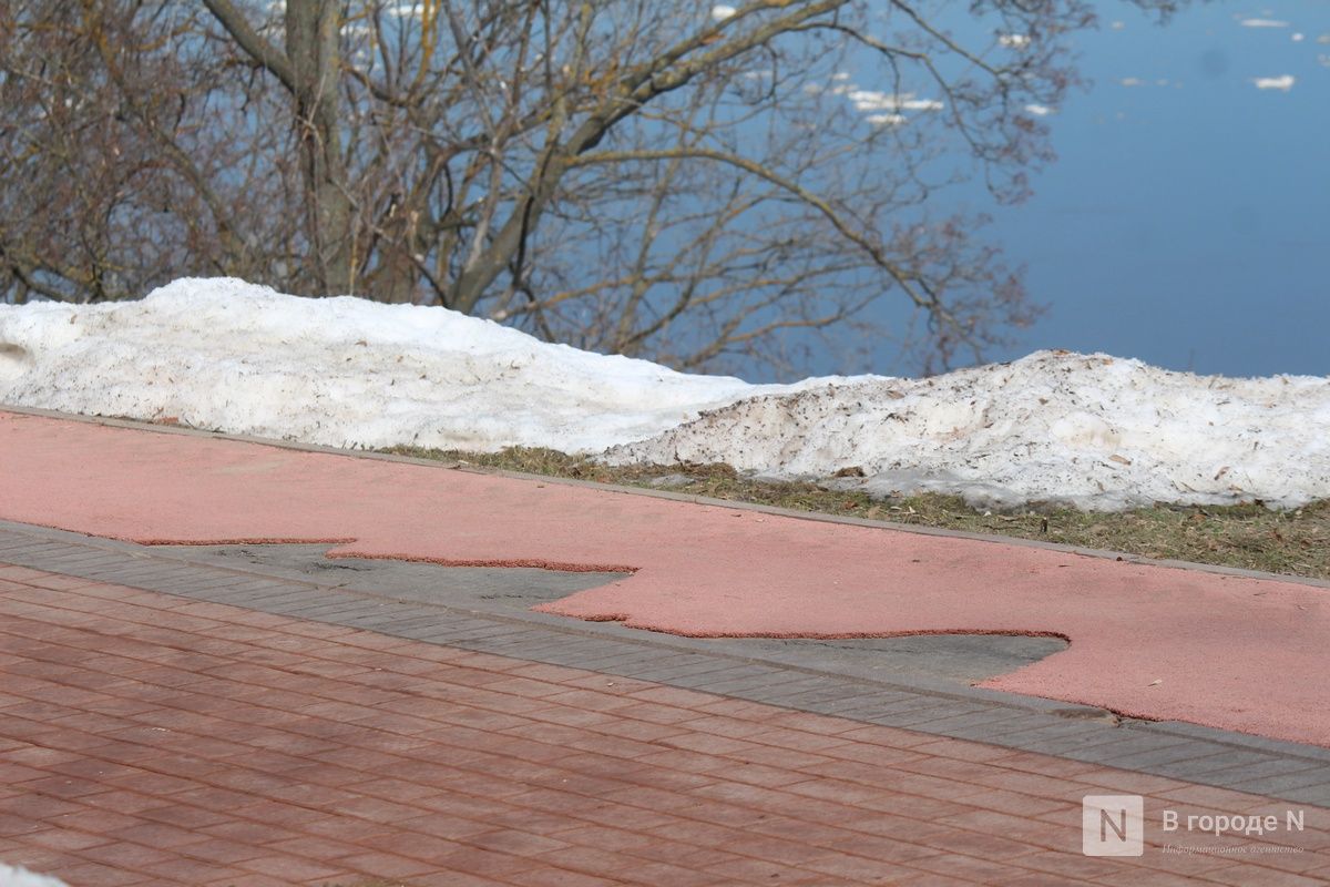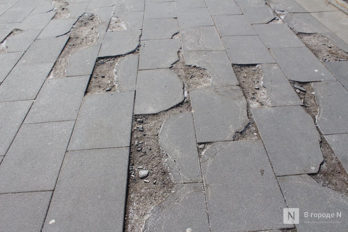 Растаявший снег обнажил множество незаметных ранее дефектов благоустройства, которые особенно бросаются в глаза в центре Нижнего Новгорода. На них обращают внимание и сами горожане, и туристы. Из года в год проблемы возникают практически в одних и тех же местах. «Танцующая» брусчатка, проржавевшие ограждения, сломанные деревянные элементы — такая неприглядная картина предстает взору жителей и гостей столицы Приволжья.