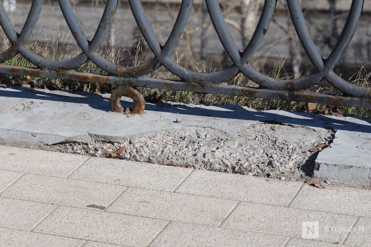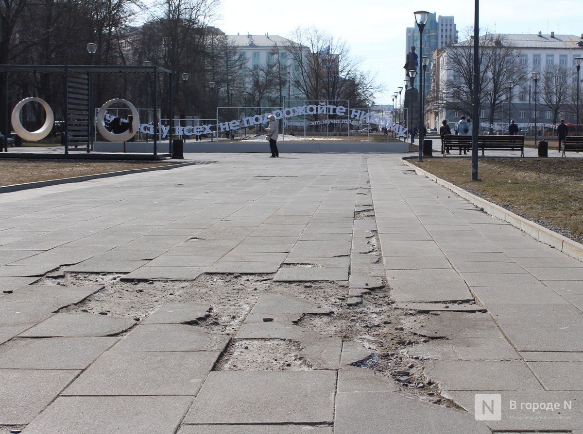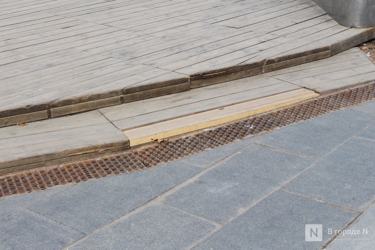 Растаявший снег обнажил множество незаметных ранее дефектов благоустройства, которые особенно бросаются в глаза в центре Нижнего Новгорода. На них обращают внимание и сами горожане, и туристы. Из года в год проблемы возникают практически в одних и тех же местах. «Танцующая» брусчатка, проржавевшие ограждения, сломанные деревянные элементы — такая неприглядная картина предстает взору жителей и гостей столицы Приволжья.