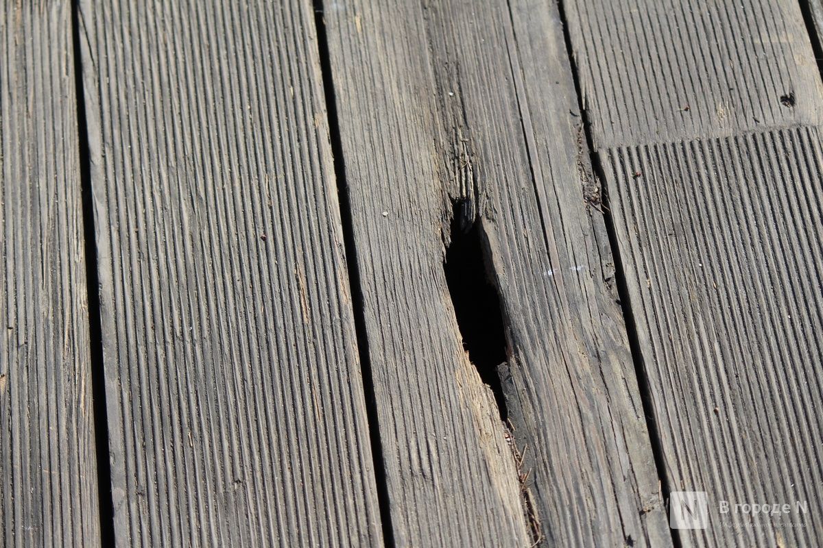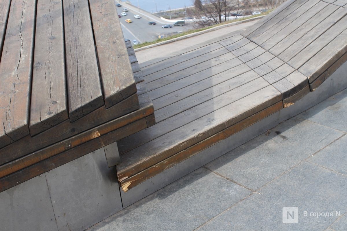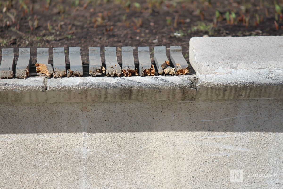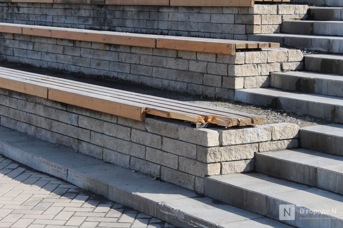 Последним пространством, которое посетила корреспондент ИА «В городе N», стала Нижневолжская набережная. Здесь тоже ежегодно проявляются одни и те же недостатки. С деревянных скамеек облезла краска, местами отсутствуют рейки. Аналогичные дефекты замечены и на амфитеатре. Правда, нынешней весной разрушений меньше, чем в прошлом году.