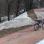 А вот Александровский сад после зимы в целом выглядит неплохо, хотя некоторые деревянные конструкции и скамейки кажутся несколько потертыми, но это не столь заметно. Единственное, что серьезно портит впечатление, — состояние беговой дорожки. Видно, что ее периодически ремонтируют — местами дефекты прикрыли «заплатками». Но кое-где еще есть весьма заметные дыры.