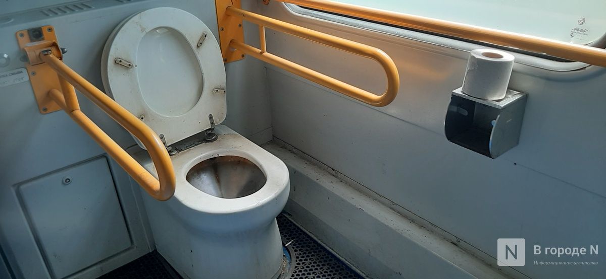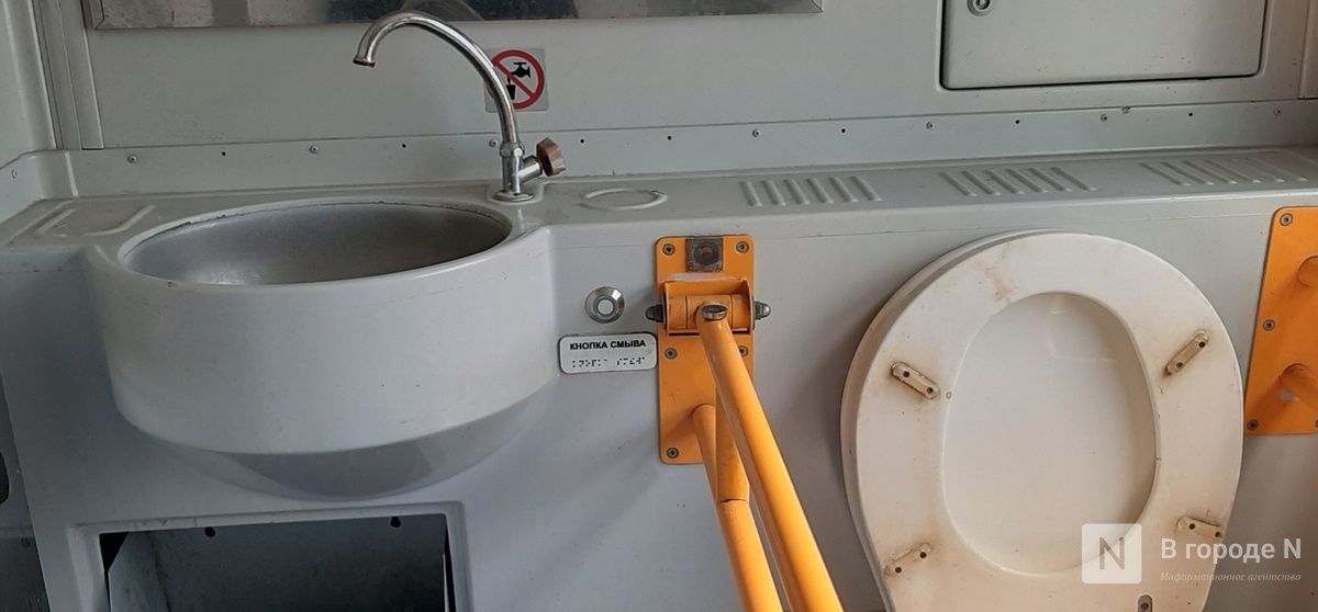 Безусловно, новая электричка оказалась более комфортной. В вагонах чисто, сидения удобные. В тамбурах установлены контейнеры для раздельного сбора мусора. Даже уборная выглядит вполне достойно: запах почти не ощущается, есть мыло и туалетная бумага. Правда, дверь заедала, и чтобы открыть ее и заглянуть внутрь, пришлось прибегнуть к помощи стоящего рядом мужчины.