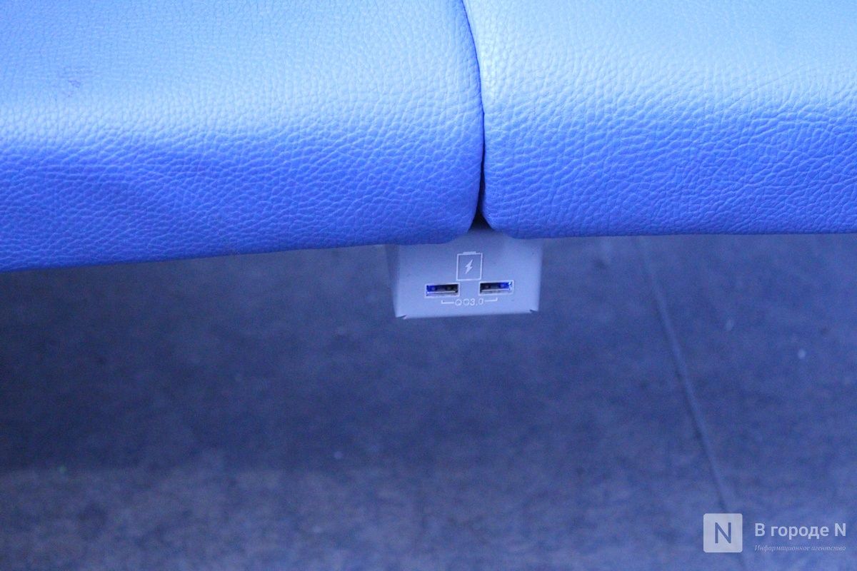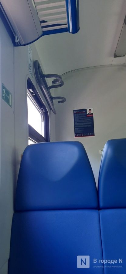 В обратный путь из Дзержинска до Нижнего Новгорода корреспондент ИА «В городе N» отправилась на современной электричке ЭП3Д. Напомним, такие поезда впервые появились в нашем регионе в конце 2018 года. Железнодорожники называют их «электричками нового поколения». Сейчас таких поездов стало больше, и они постепенно вытесняют старые. Составы оборудованы системами кондиционирования, обеззараживания воздуха и климат-контроля, удобными креслами, USB-разъемами для зарядки гаджетов и большими полками для багажа. Есть даже крепления для велосипедов.
