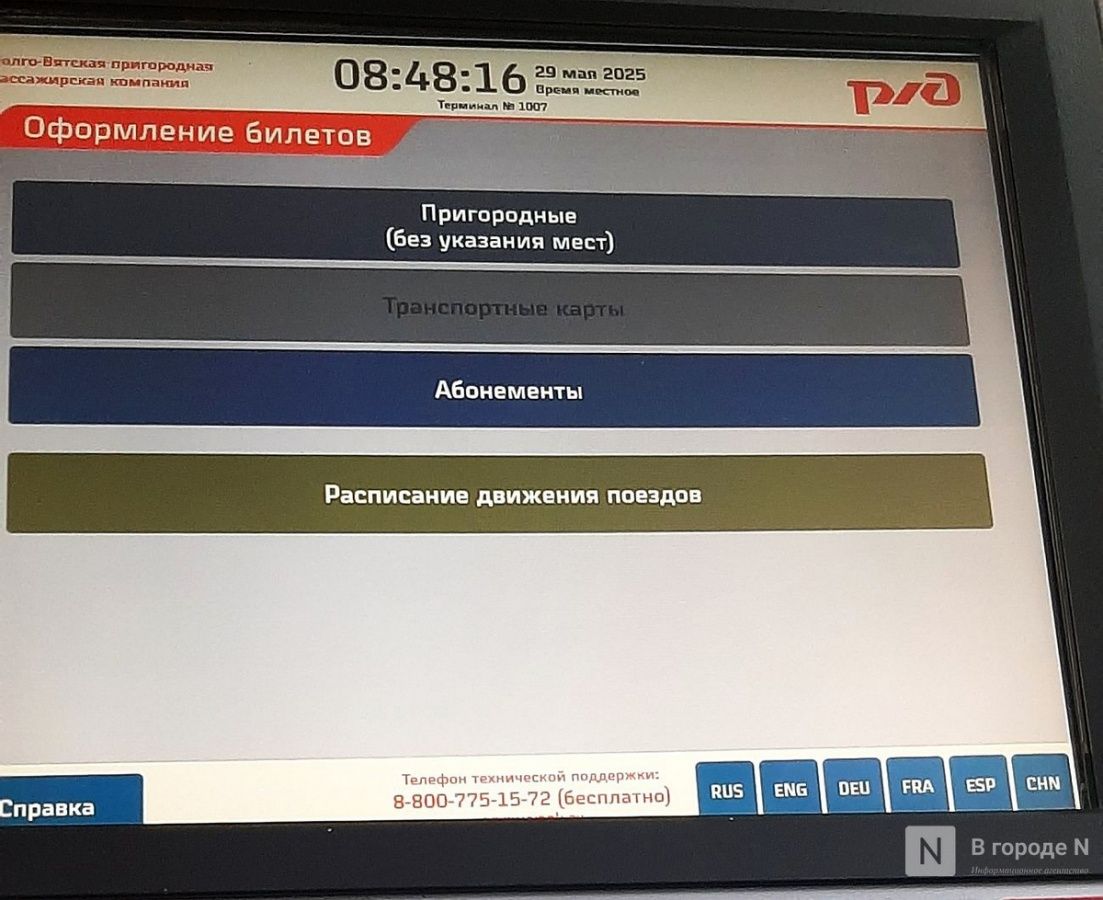 Помимо состояния самих электричек, корреспондент ИА «В городе N» намеревалась также оценить удобство покупки билетов и навигацию на вокзалах. Сможет ли сориентироваться здесь человек, который решил поехать на электричке впервые? В этом плане в Нижнем Новгороде все прошло гладко. Пригородные кассы удалось найти сразу благодаря огромным буквам на вывеске. Внутри чисто, работают больше десятка окошек, вежливый персонал и никаких очередей в 9 часов утра.