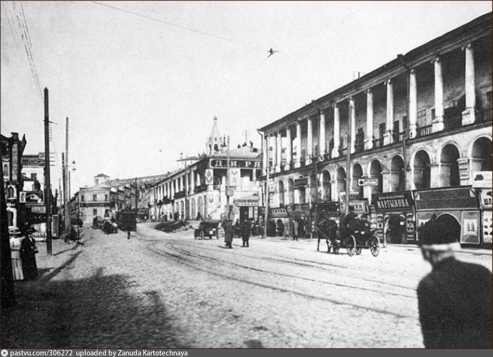 Фото: Максим Дмитриев. «Нижнепосадский гостиный двор на ул. Рождественской, вид на Скобу» нач. XX века / pastvu.com