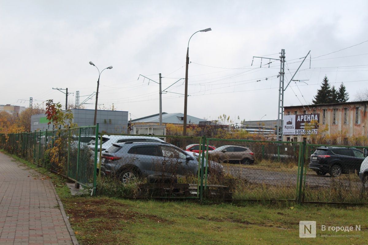 Следующие два выхода из метро должны появиться у дома № 76б по улице Станционной. Сейчас на этом месте парковка. Рядом располагается автосервис — единственный, который работает.