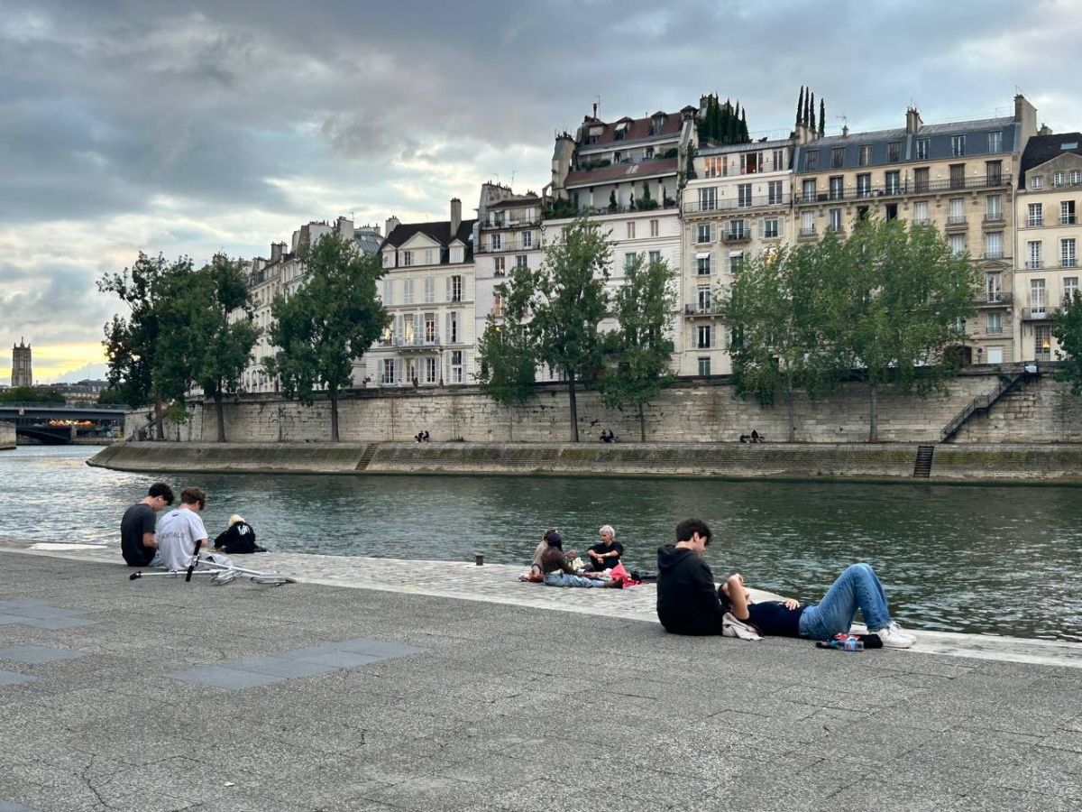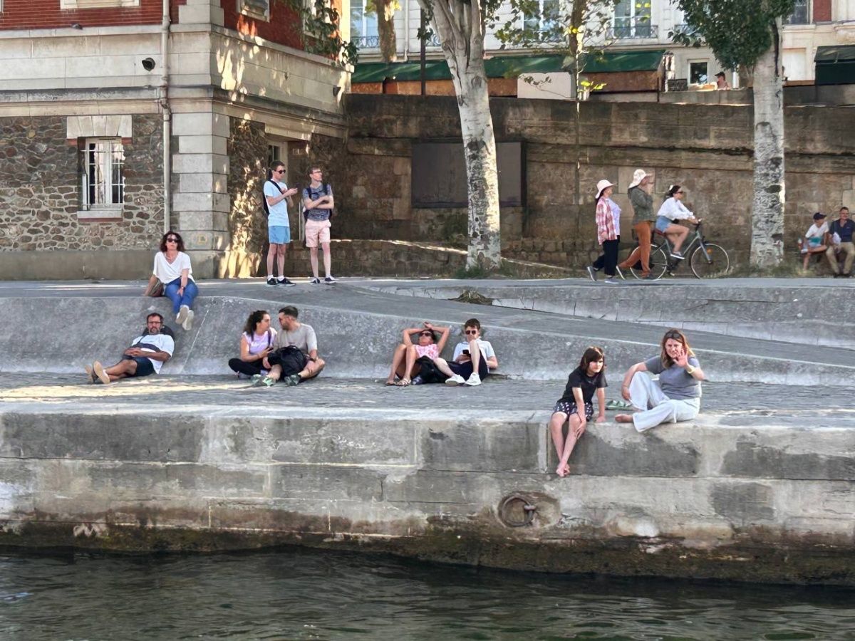 Вот пенсионерка, выгуливающая пса, решила отдохнуть и посмотреть на воду. Вот мужчина, который вышел подышать воздухом и прихватил с собой книгу. А вот друзья, которые пришли обсудить последние новости. Мы тоже разделили эту атмосферу расслабленности и безмятежности с парижанами и дали отдых нашим ногам.