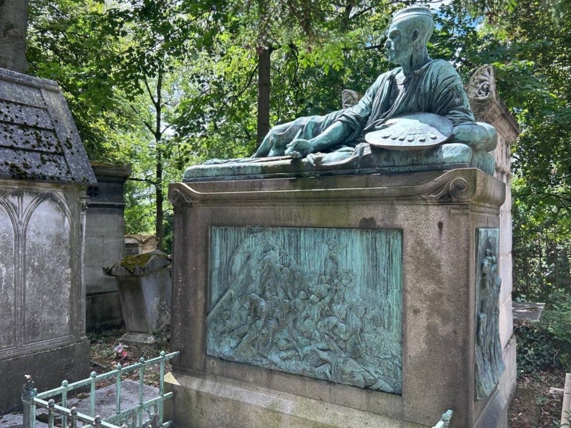 Мы подошли и к могилам художников Теодора Жерико («Плот медузы») и Эжена Делакруа («Свобода, ведущая народ»). Оба творили в первой половине XIX века. Еще на кладбище похоронен писатель Оноре Бальзак, написавший серию романов и повестей «Человеческая комедия».