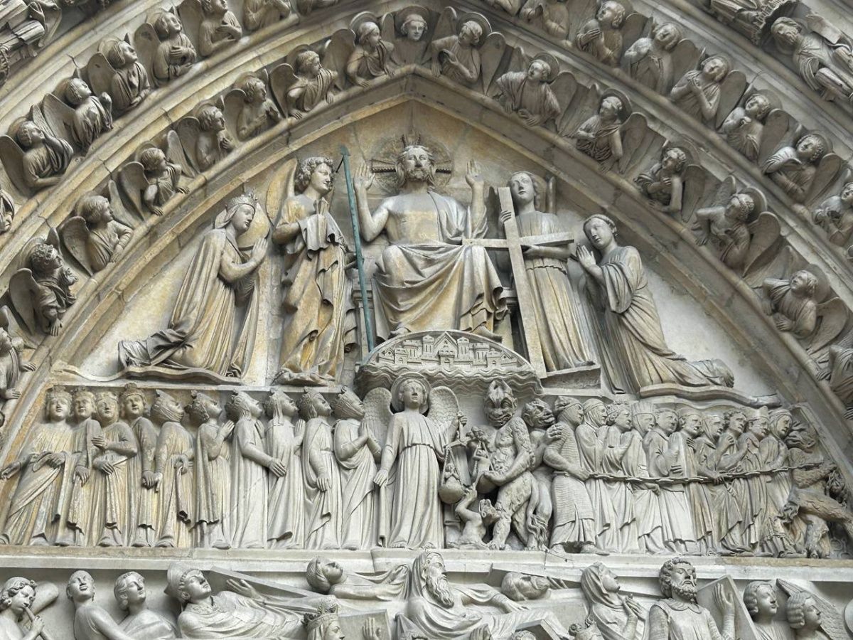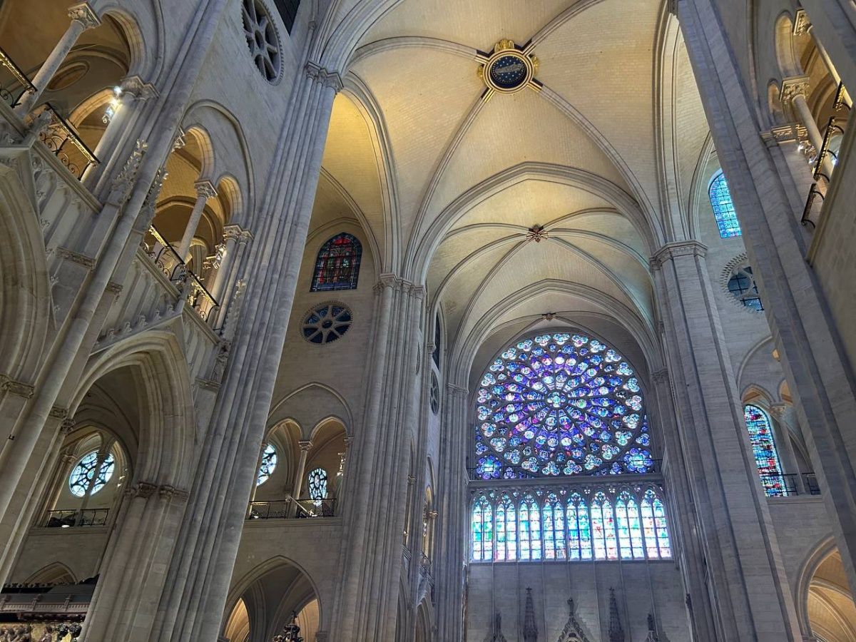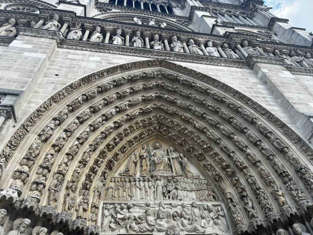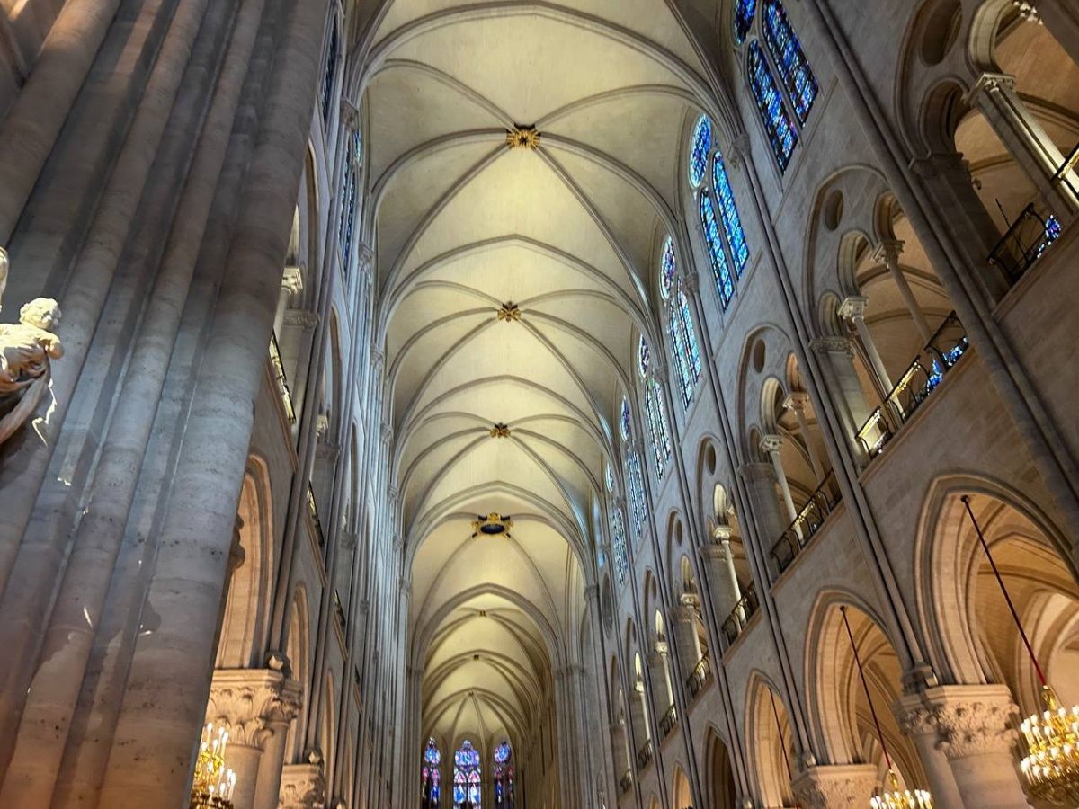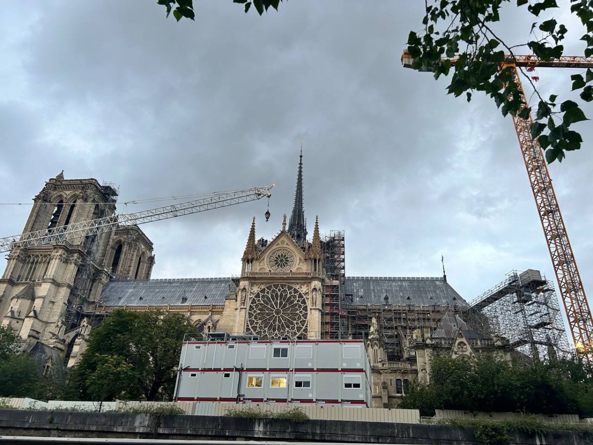 Часть собора все еще закрыта строительными лесами. Здание восстанавливают после крупного пожара, который в 2019 году почти полностью уничтожил каркас крыши, привел к обрушению шпиля и повредил внутренние убранства. Сейчас пострадавшие части восстановлены, для посетителей собор открыт с декабря 2024-го. К нему мы еще вернемся позже.