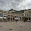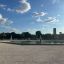 Сразу после парковой части начинается площадь с бетонными черно-белыми фигурами разной высоты. Столбики любопытно вписались в пространство внутреннего двора дворца середины XVII века.