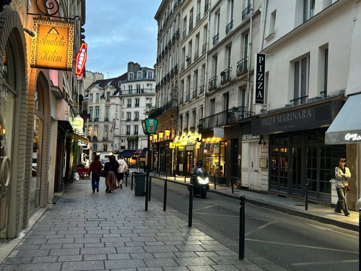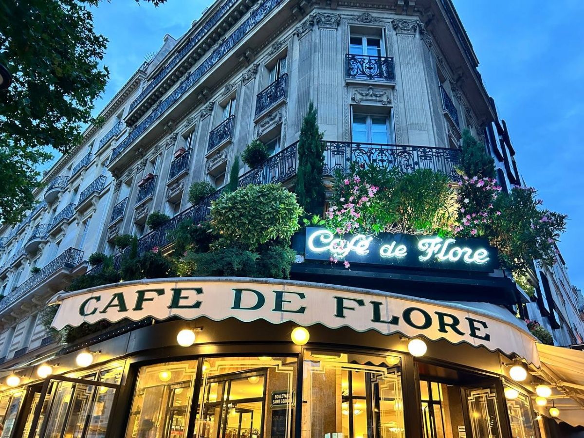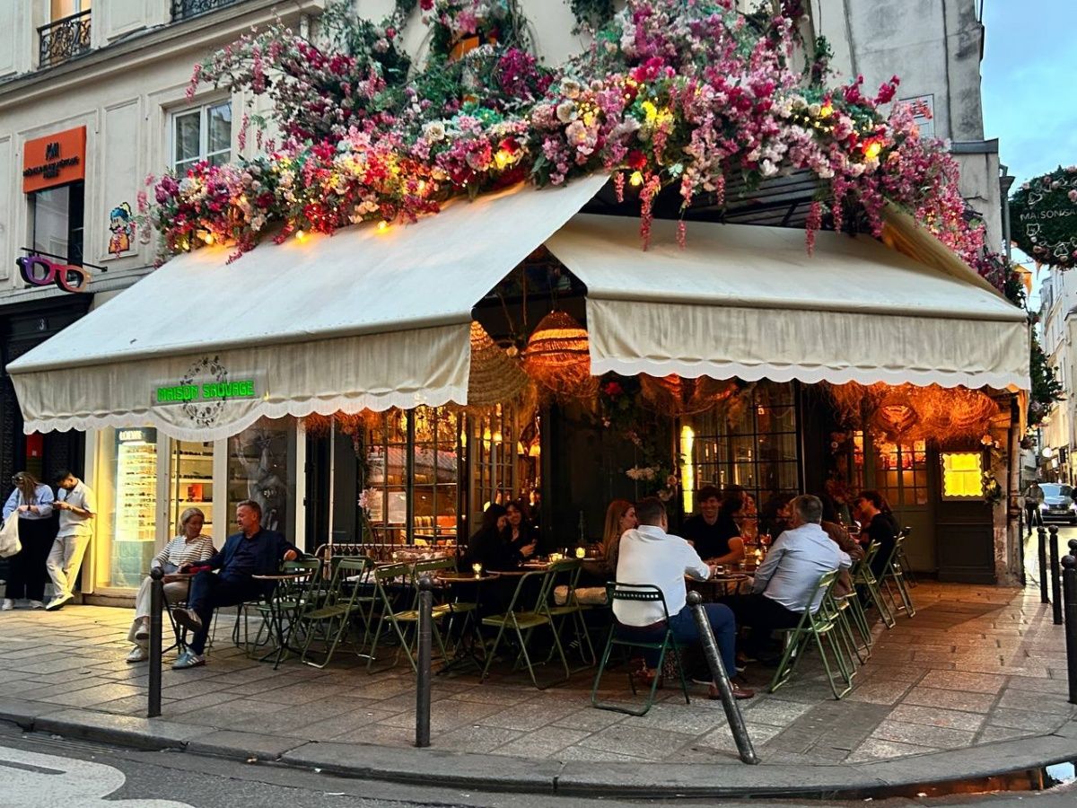 Прогулка по кипящим жизнью улочкам продолжается. Одни парижане ютятся на летних верандах в шумных компаниях, другие уезжают на велосипедах по домам, а остальные — туристы, жадно поедающие глазами красоту вокруг. Яркие вывески, здания — одно красивее другого, вечерний свет кафе и парижане.