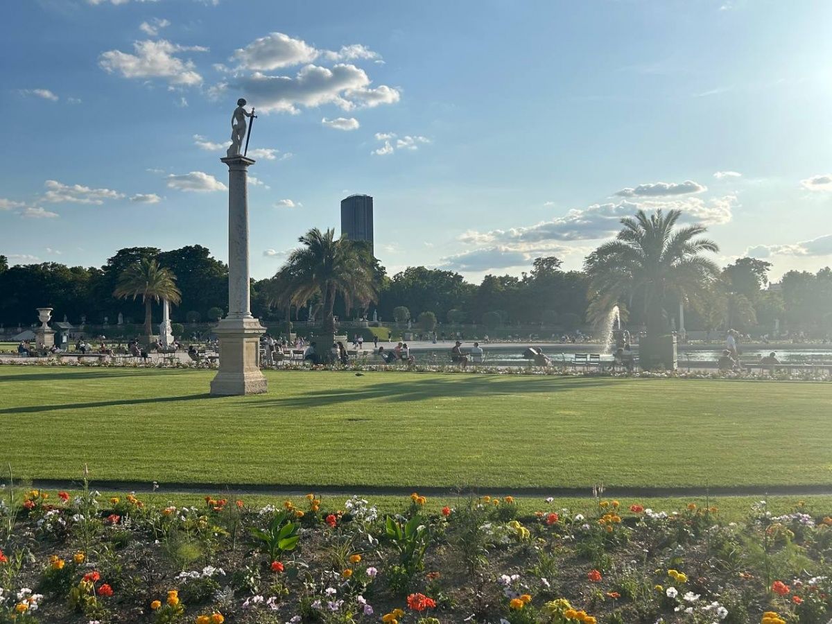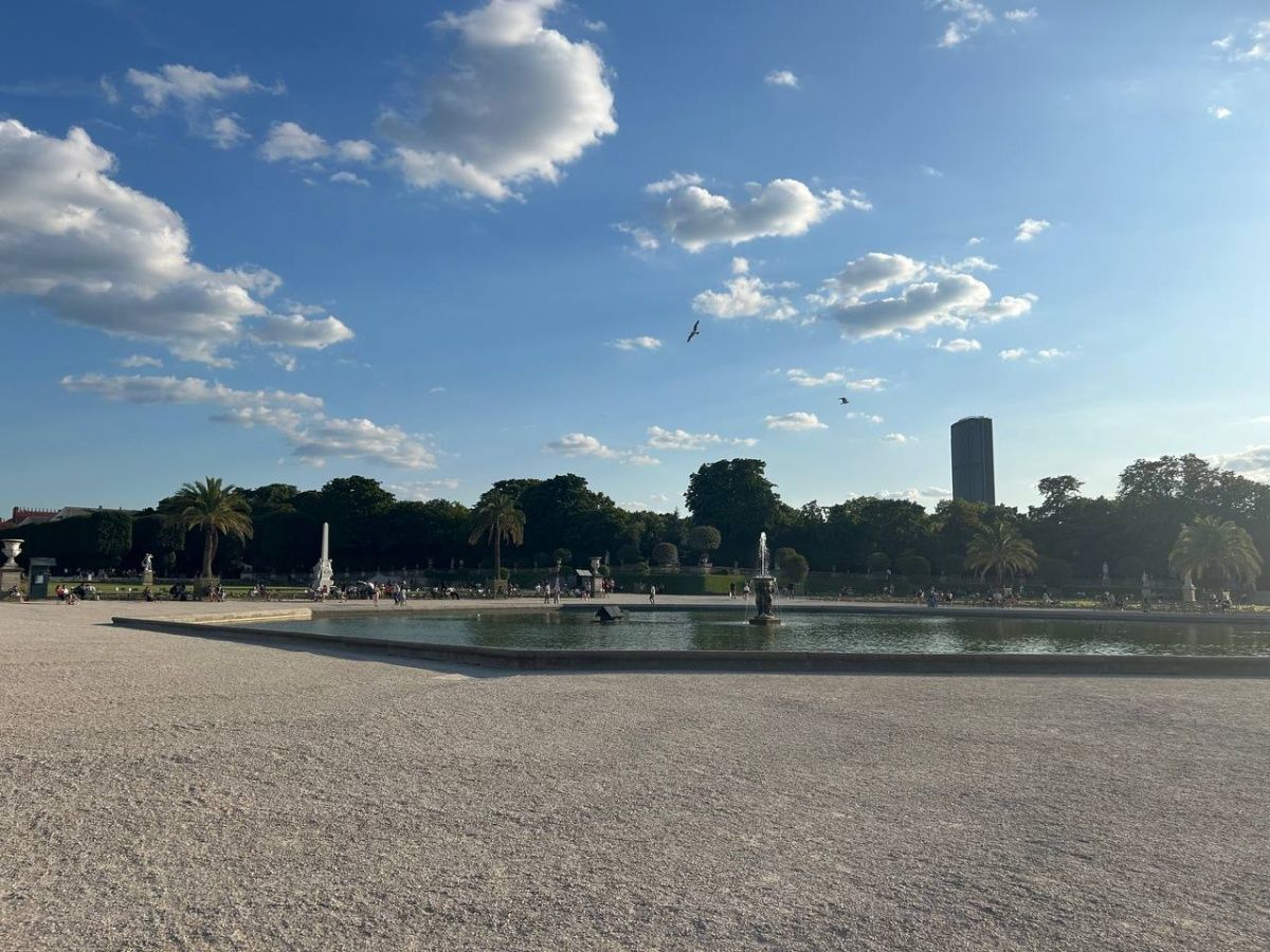 Все как и в остальных парках: зеленые стильные стульчики (отдельная визитная деталь города), фонтан, очень много зелени и Люксембургский дворец.